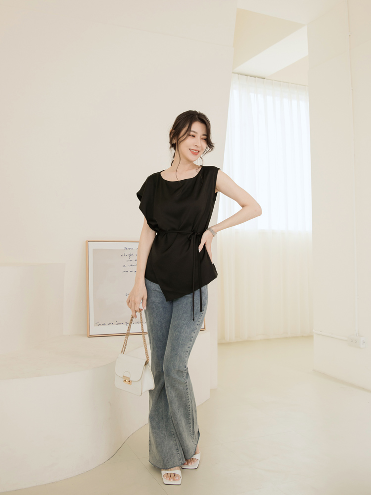 Asymmetric Tie-Waist Blouse