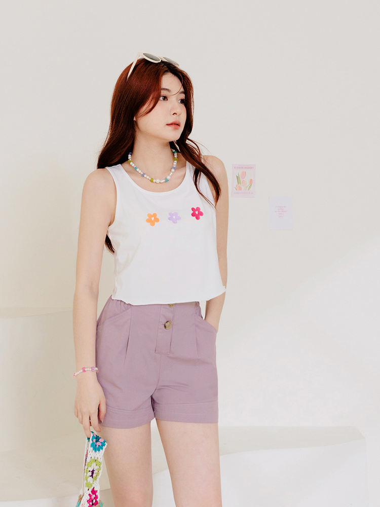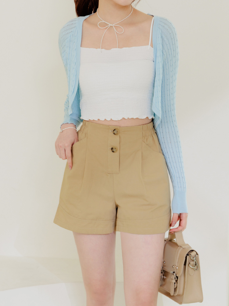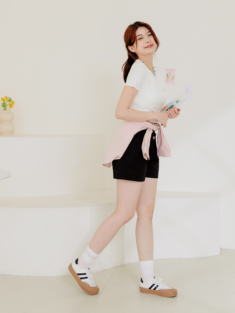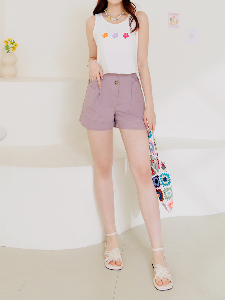 Cotton Asymmetric Button Detail Shorts