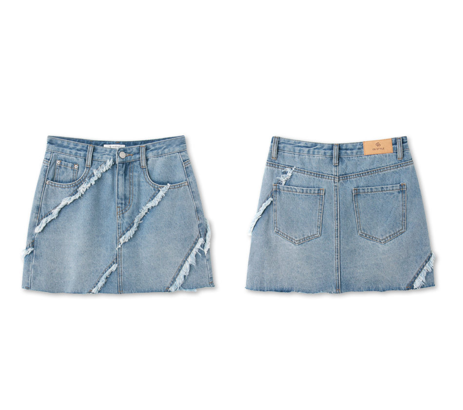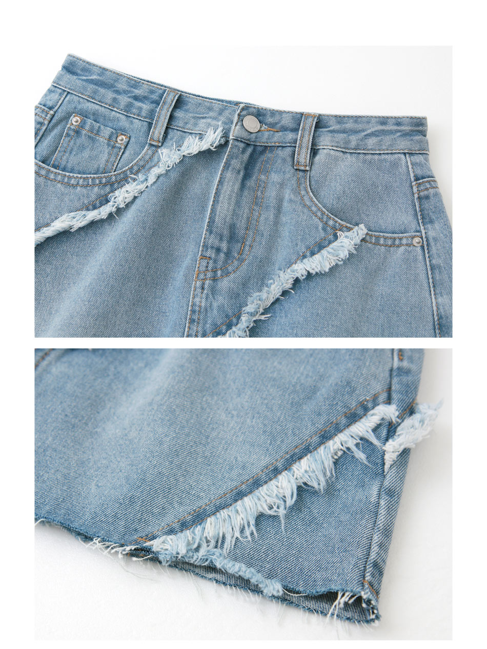 Washed Denim Mini Skirt with Raw Hem