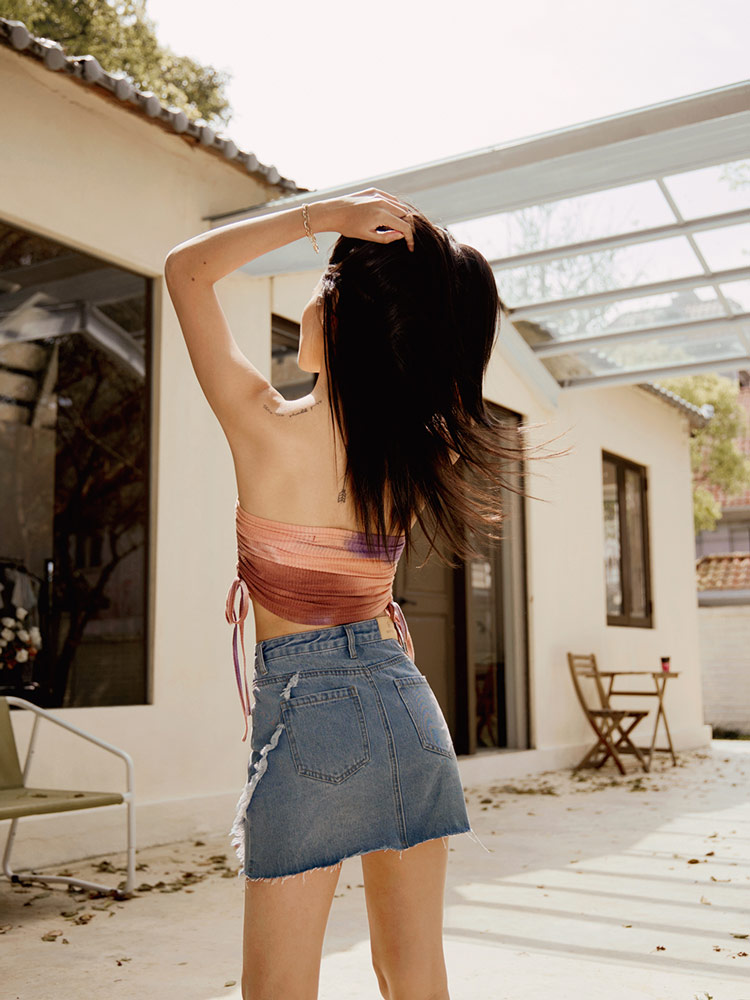 โ Features a stylish raw hem.