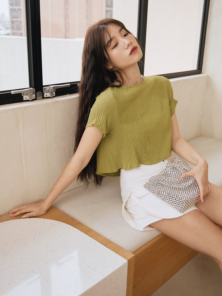 Textured Cropped Casual Top