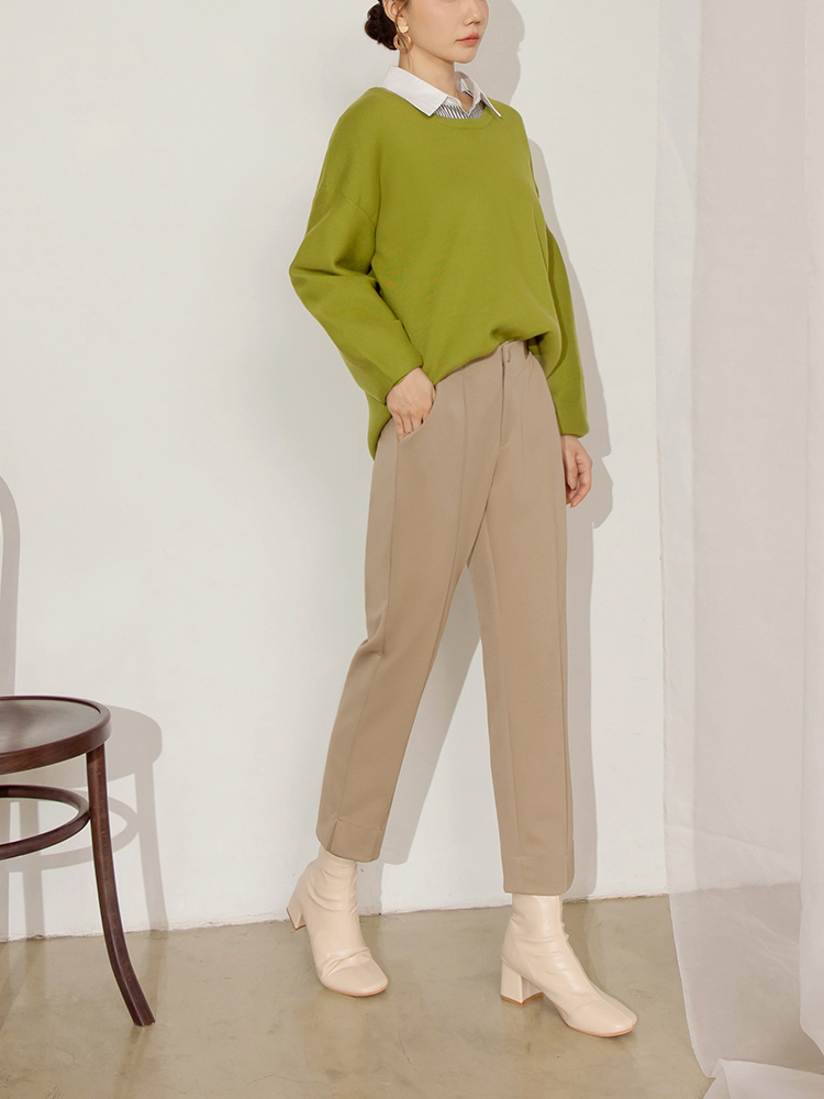 Elastic Waist Slit Hem Cropped Trousers
