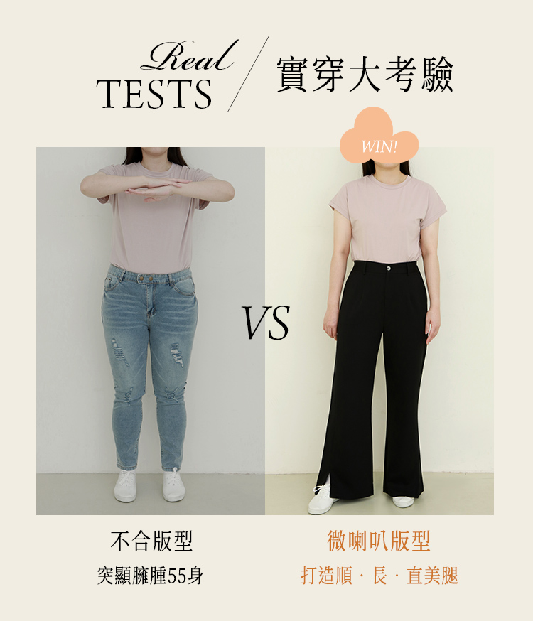 โ Flare cut to flatter the legs.
