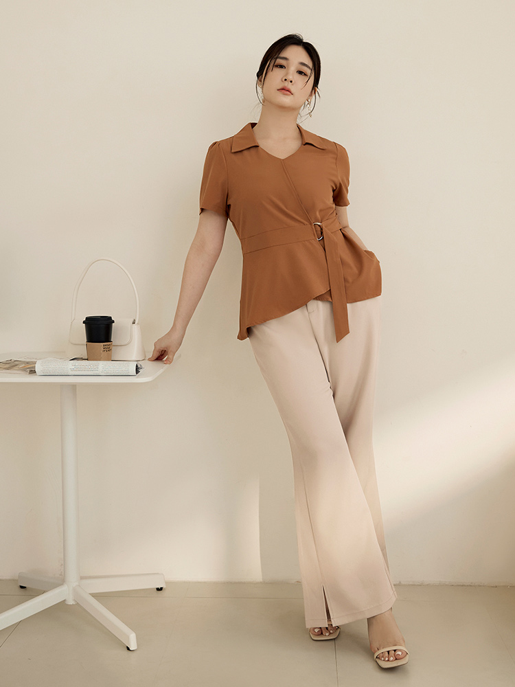 Asymmetrical Hemline Casual Blouse Shirt