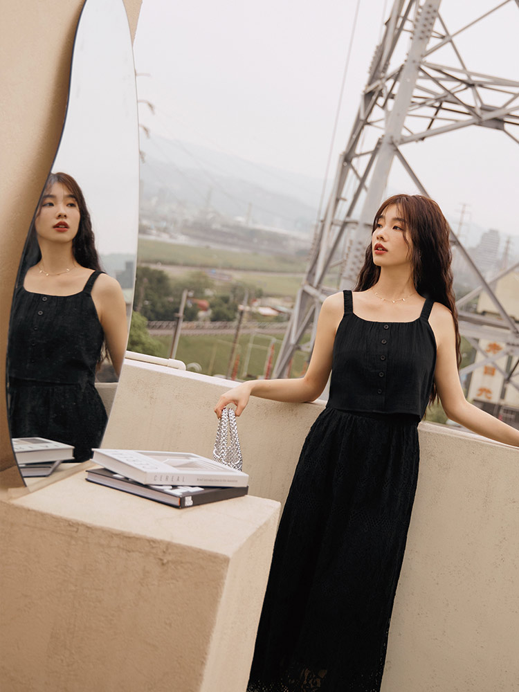 โ Decorative button detailing.