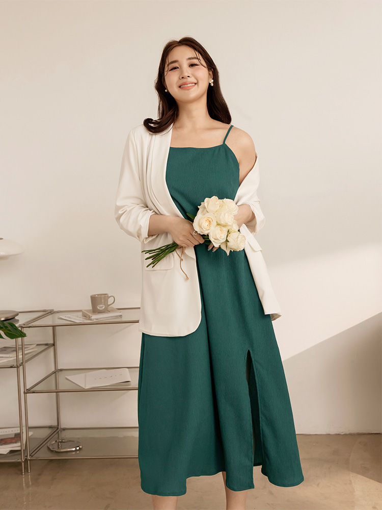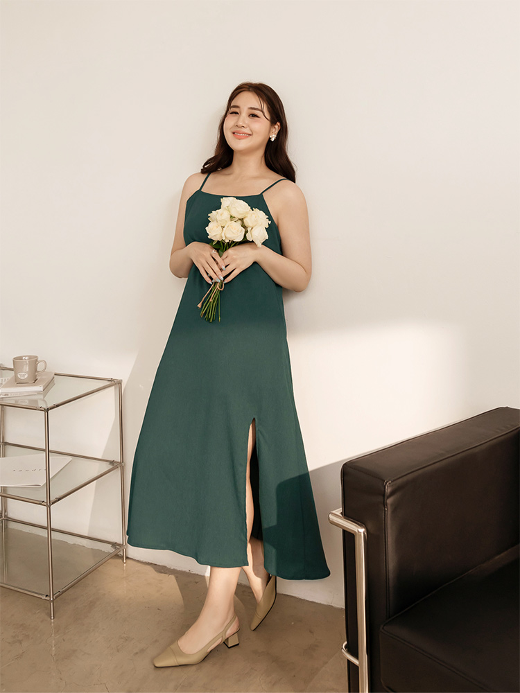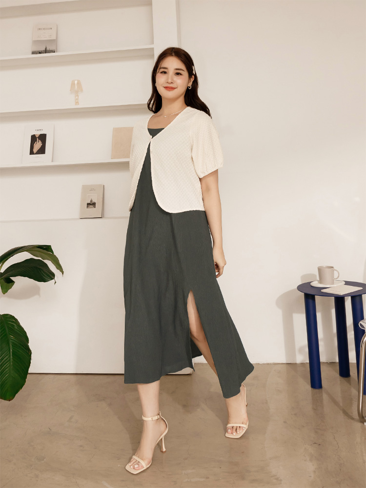 Textured Strap Slit Maxi Dress