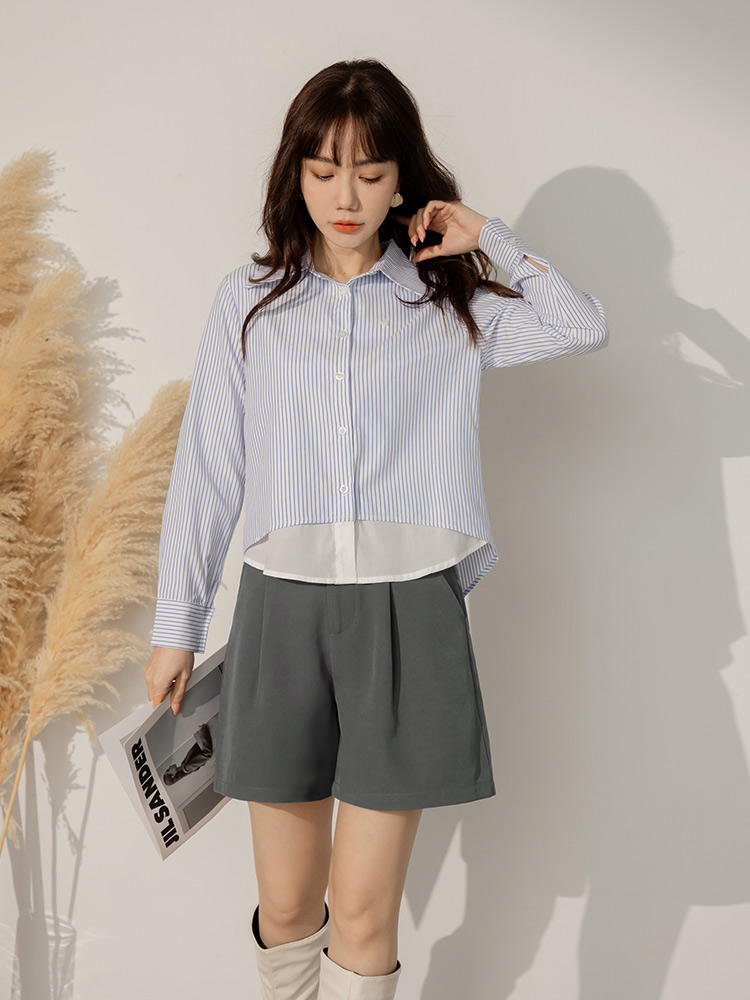 Cotton Asymmetric Button Detail Shorts