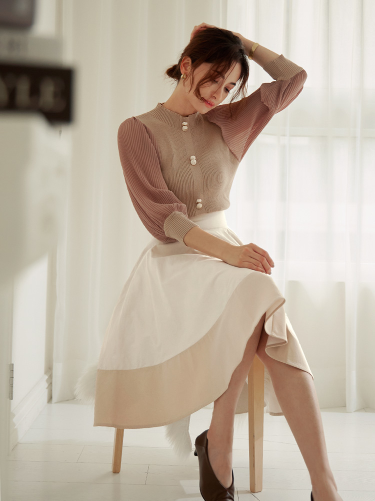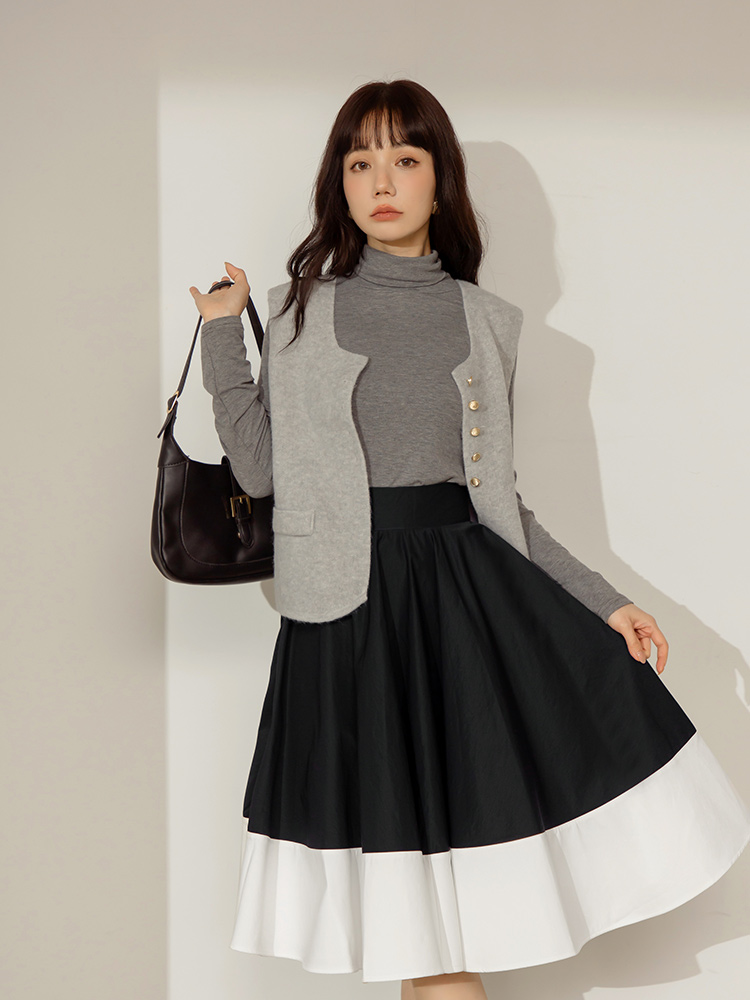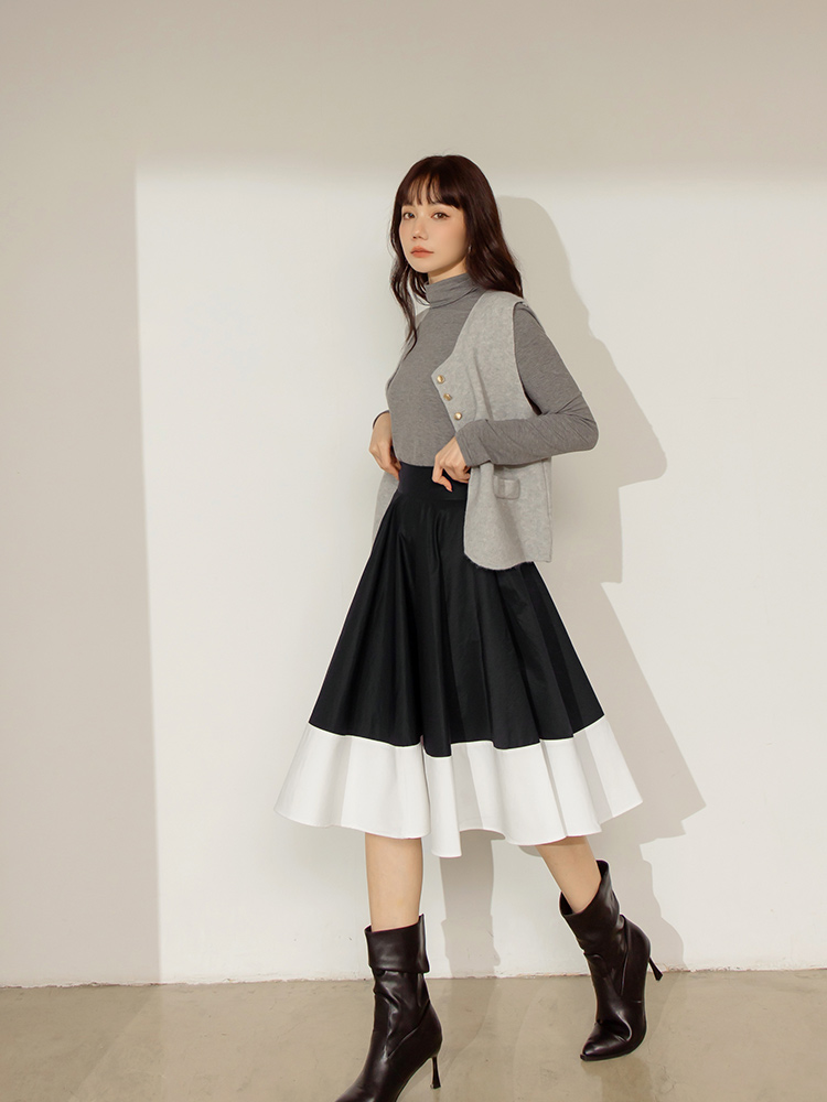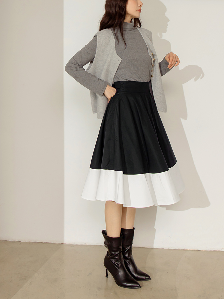 Vintage Colour-Block Midi Skirt