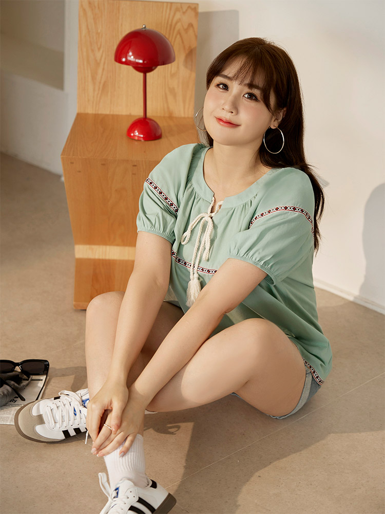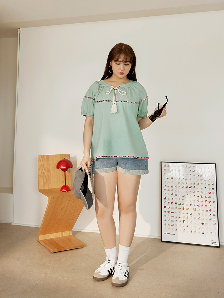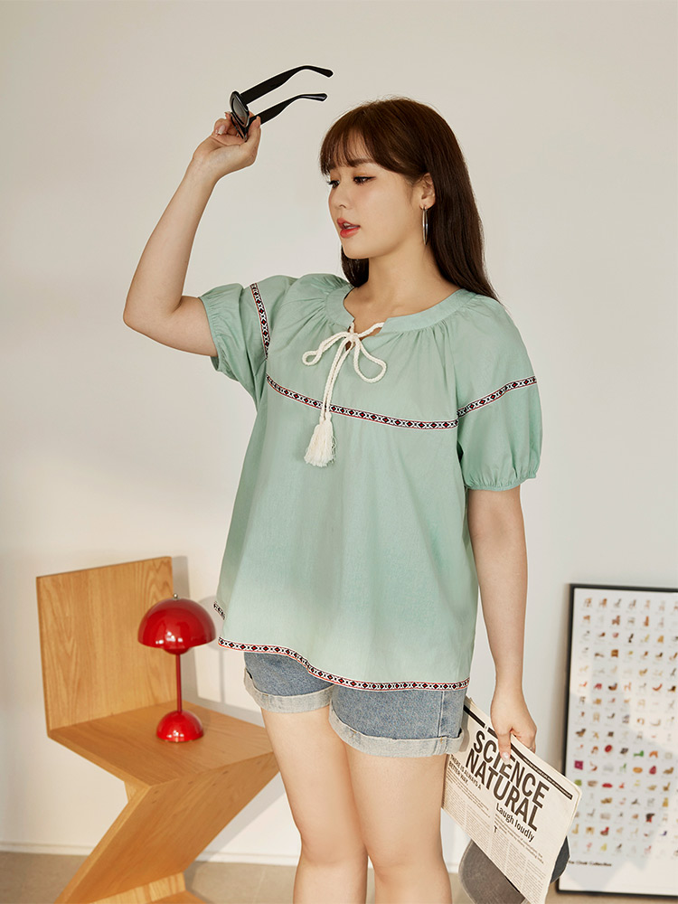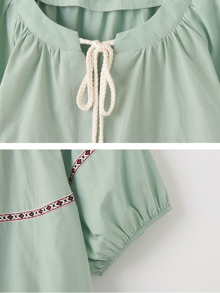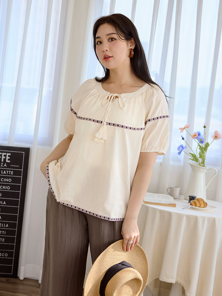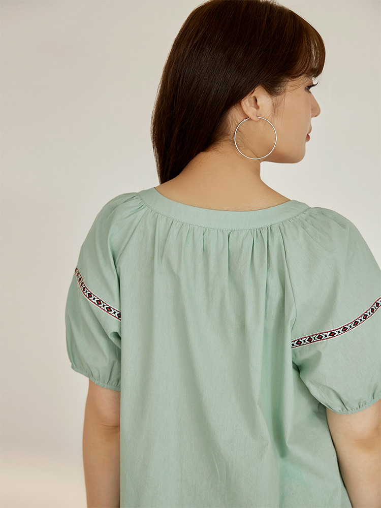Cloud Cotton Embroidered Tie-Sleeve Top