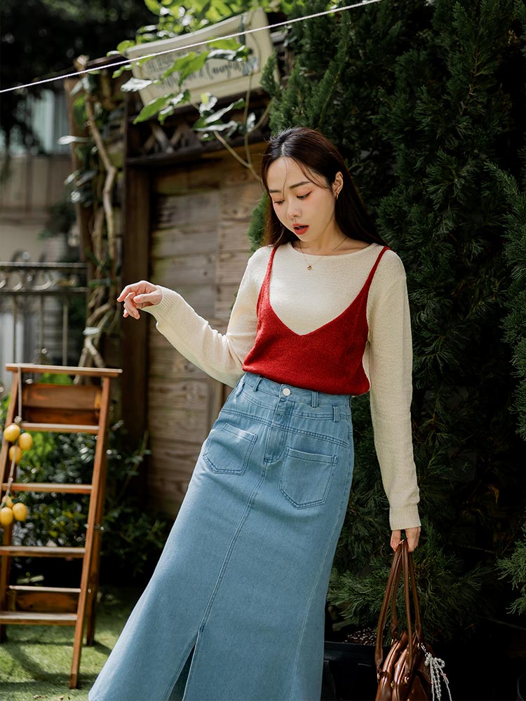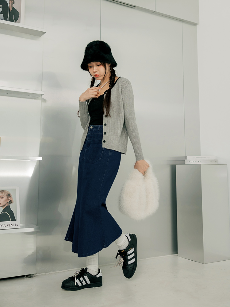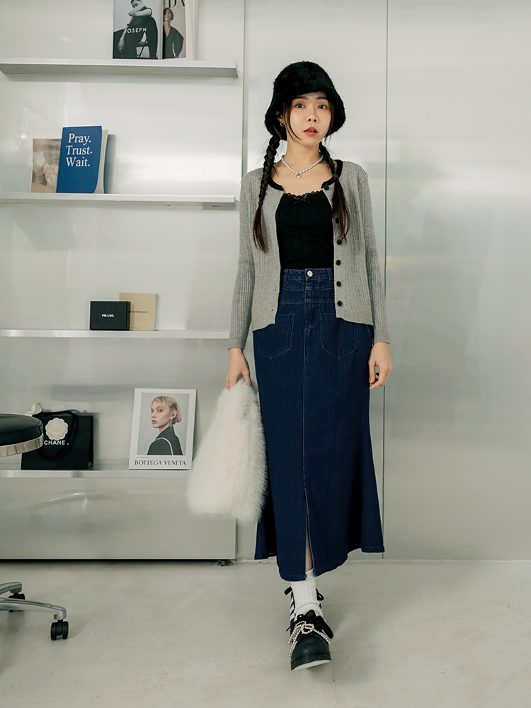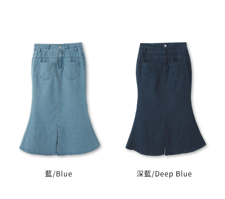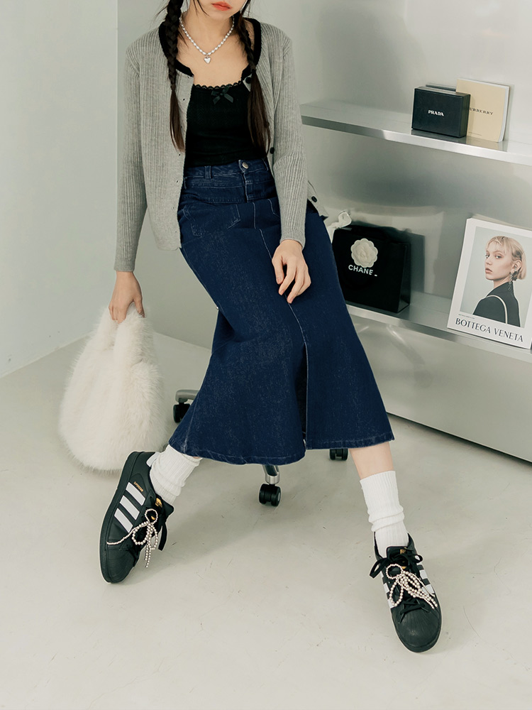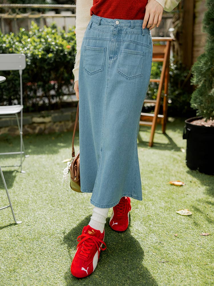 Denim High-Waist Fishtail Maxi Skirt