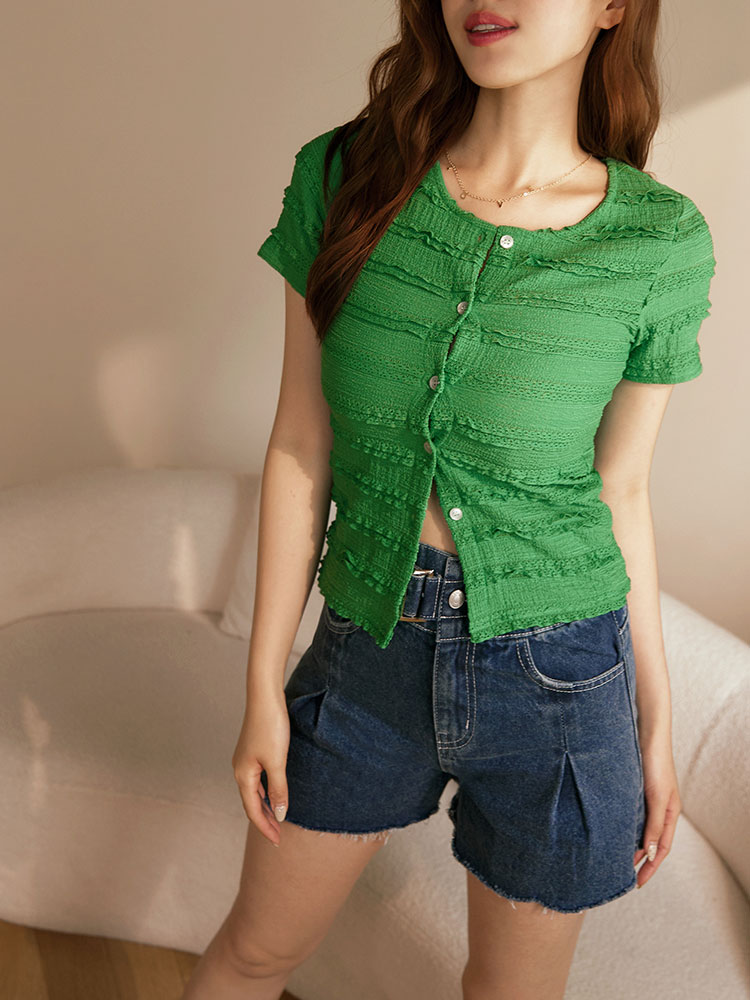 Layered V-neck Ruffle Trim Open-Front Knit Top
