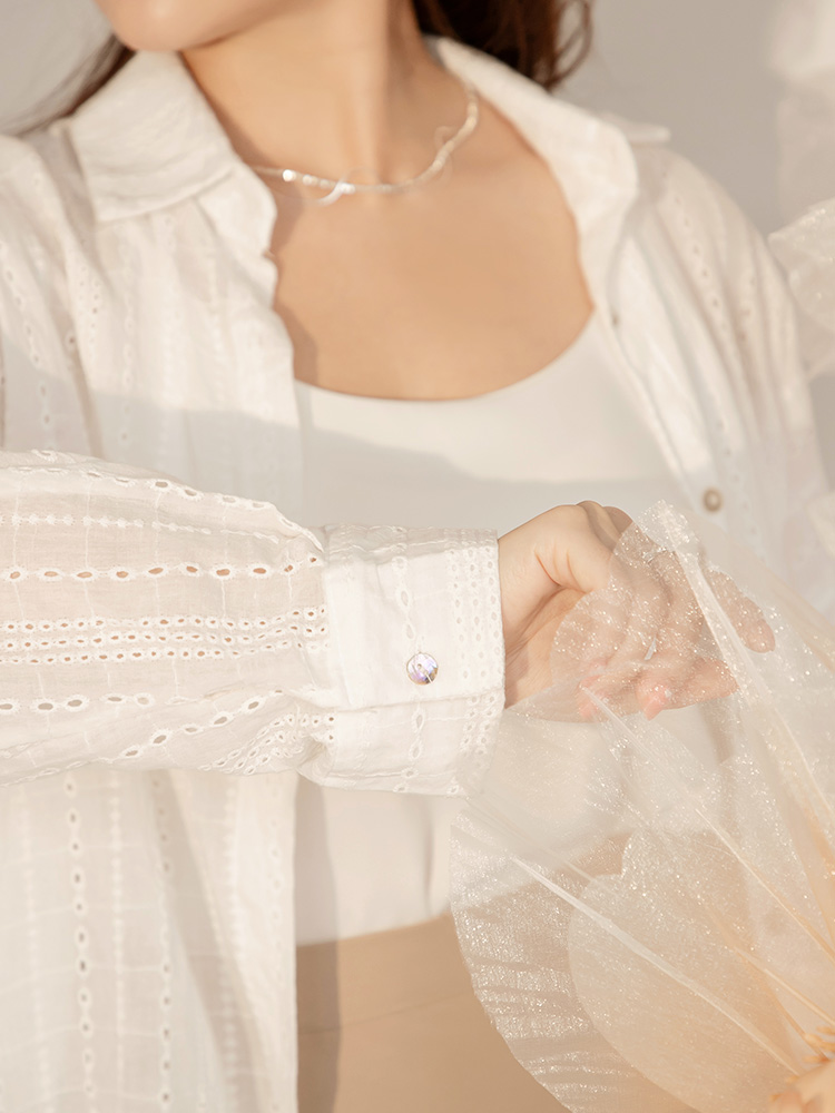 Cloud Cotton Lace-Trimmed Blouse