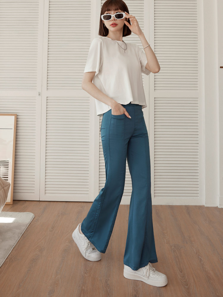 Product Feature: โ Made with a blend of breathable and stretchy fabric for all-day comfort โ High-waist design with a flattering fit โ Features front pockets โ Flared leg to elongate your silhouette