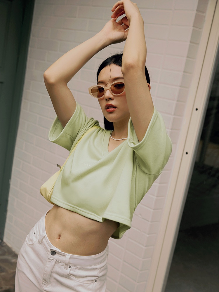 Product Feature: โ Made with UV-resistant fabric for sun protection โ Designed with a versatile V-neck โ Features a comfortable, cropped cut for easy movement