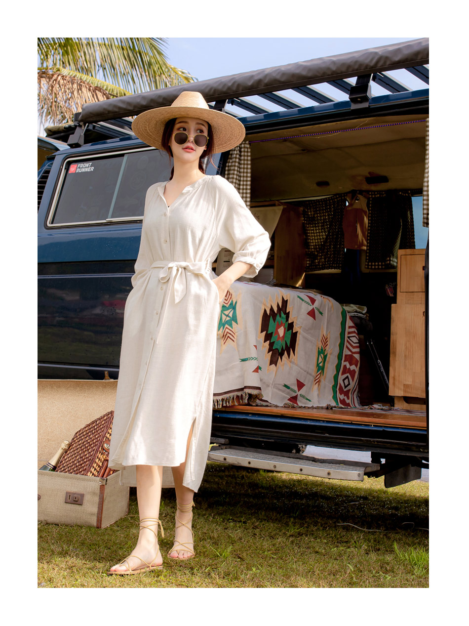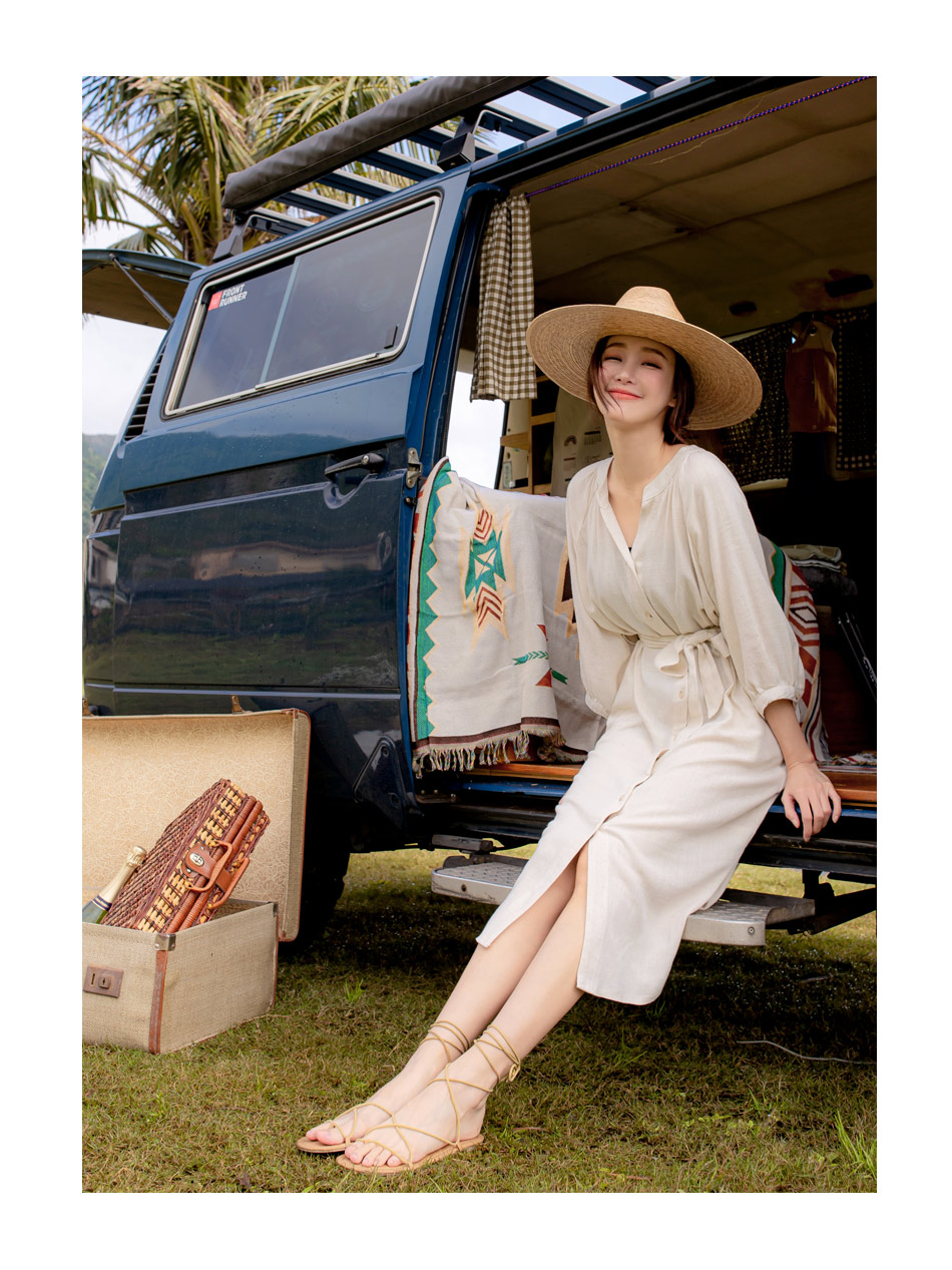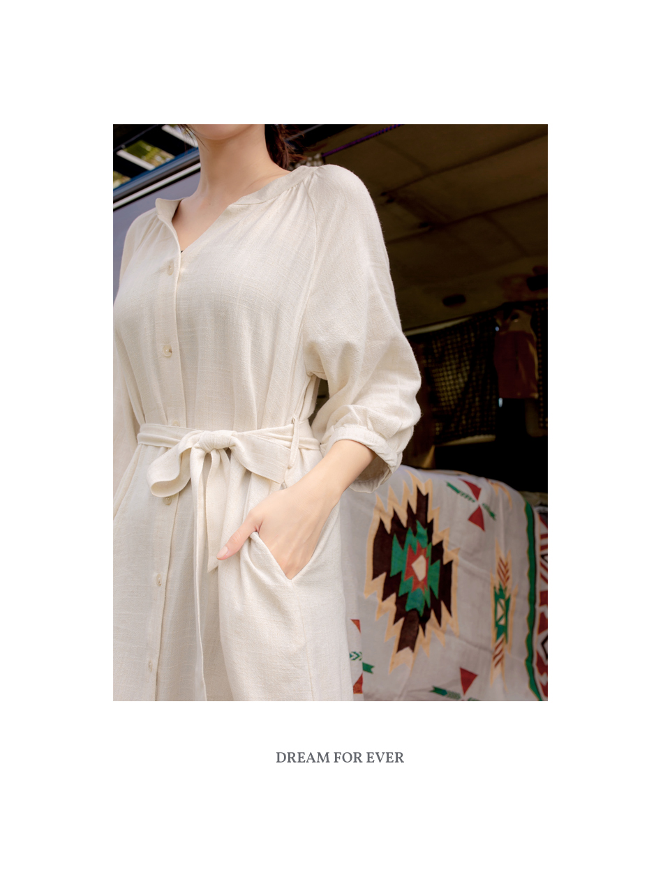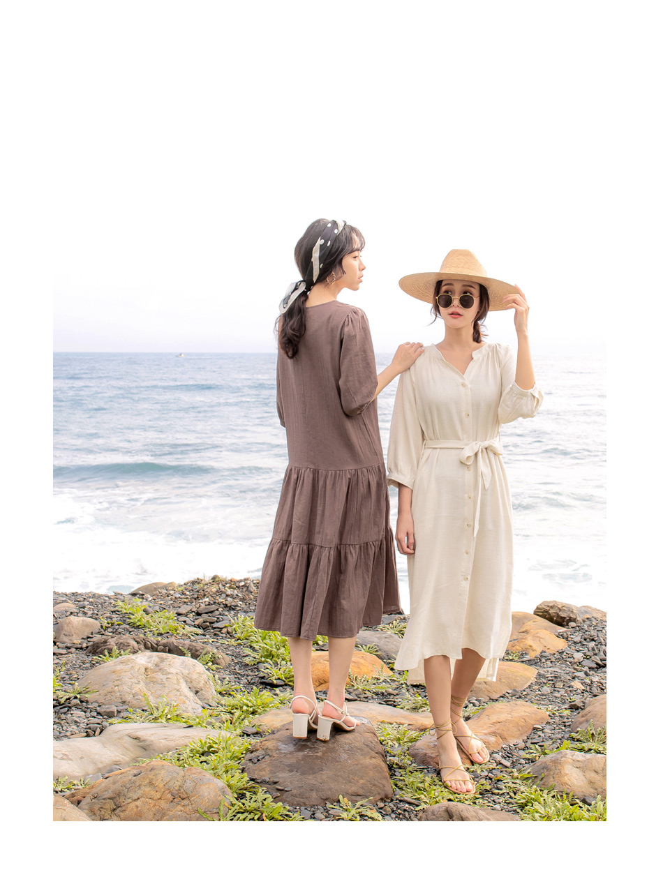 Linen-Blend Tie-Waist Midi Dress