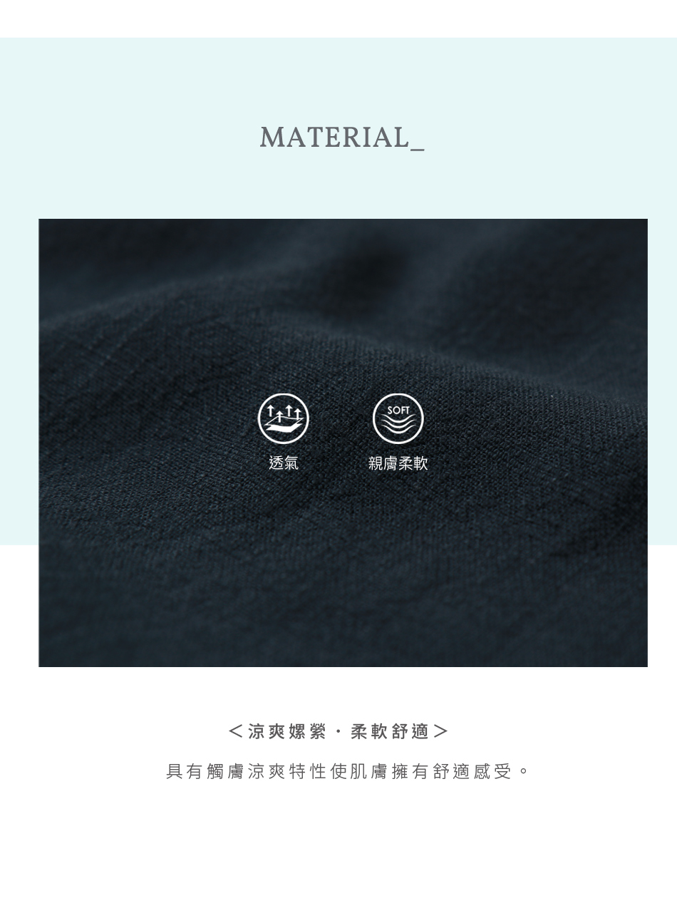 โ Crafted from a breathable linen blend.