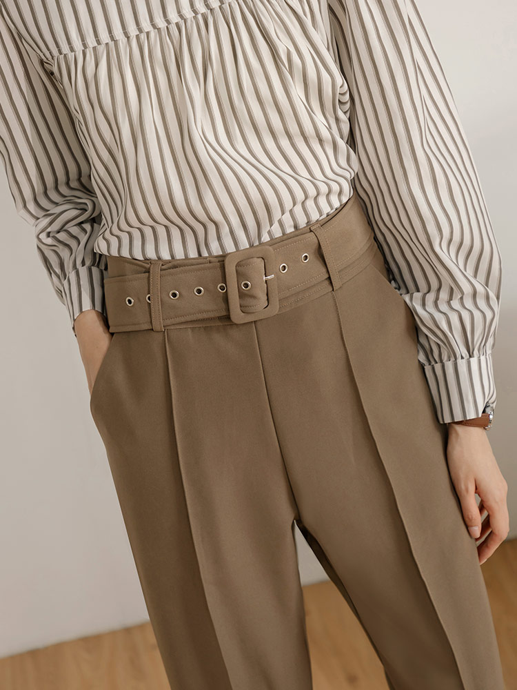Product Feature: โ Designed with a sleek front centre line to elongate the legs. โ Features a quality square waist belt for a perfect fit. โ Designed with functional front pockets and a side zipper. โ Available in classic, versatile colours for easy pairing.