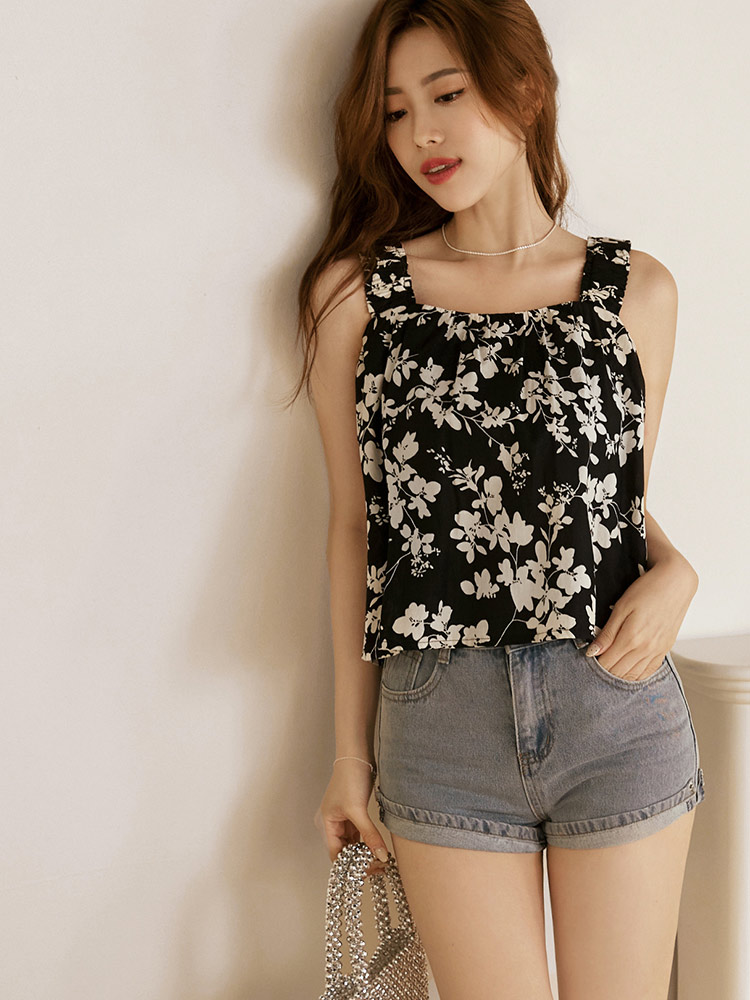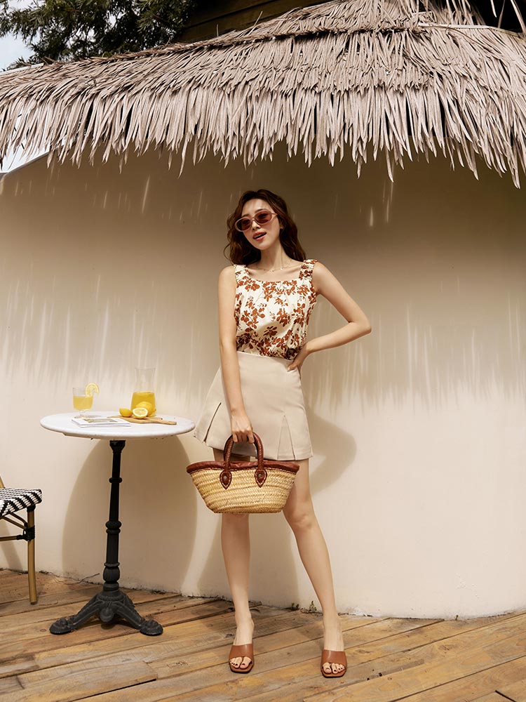 Cotton Leaf Print Cropped Top