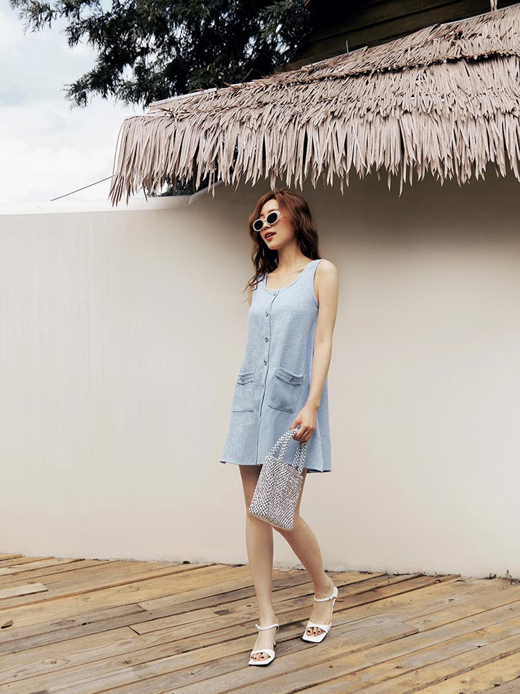 Stylish Knit Button Mini Dress