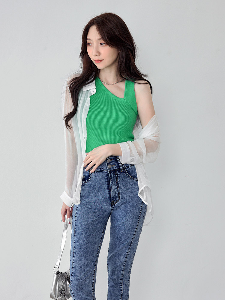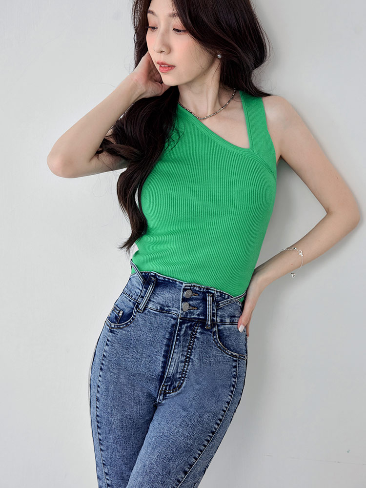 Asymmetric Neckline Knit Vest Top