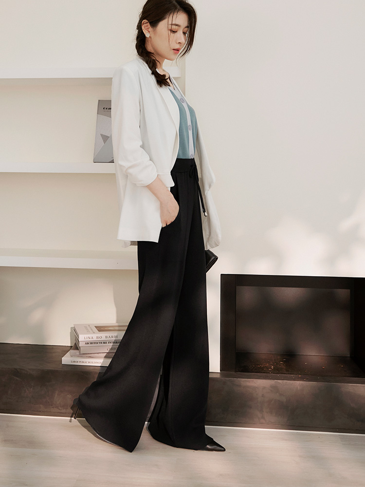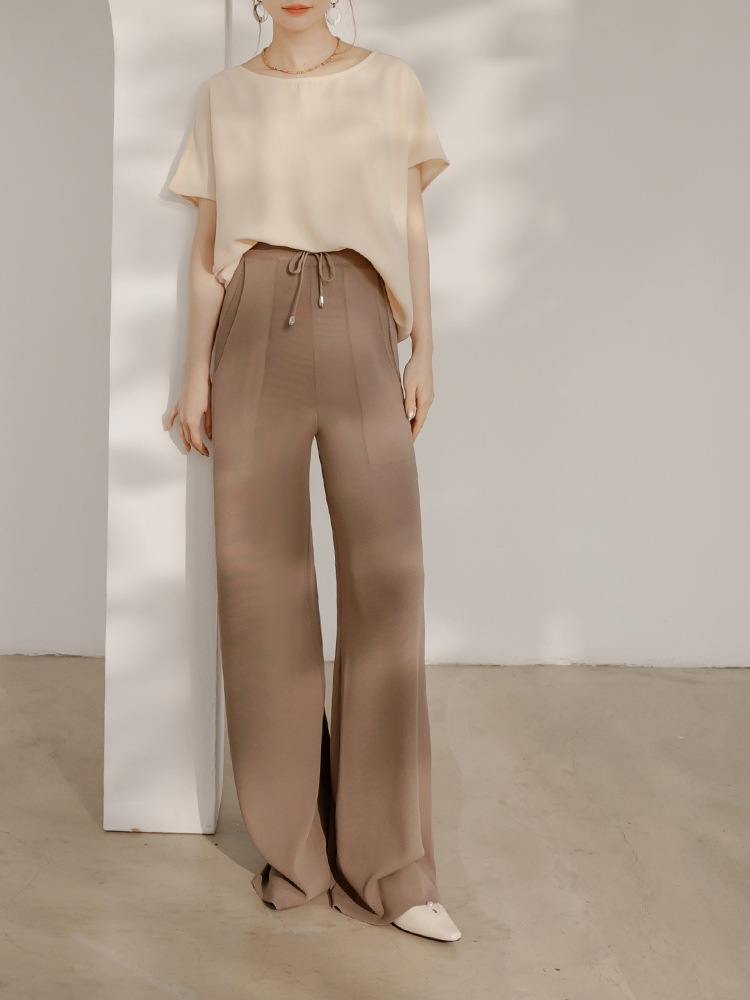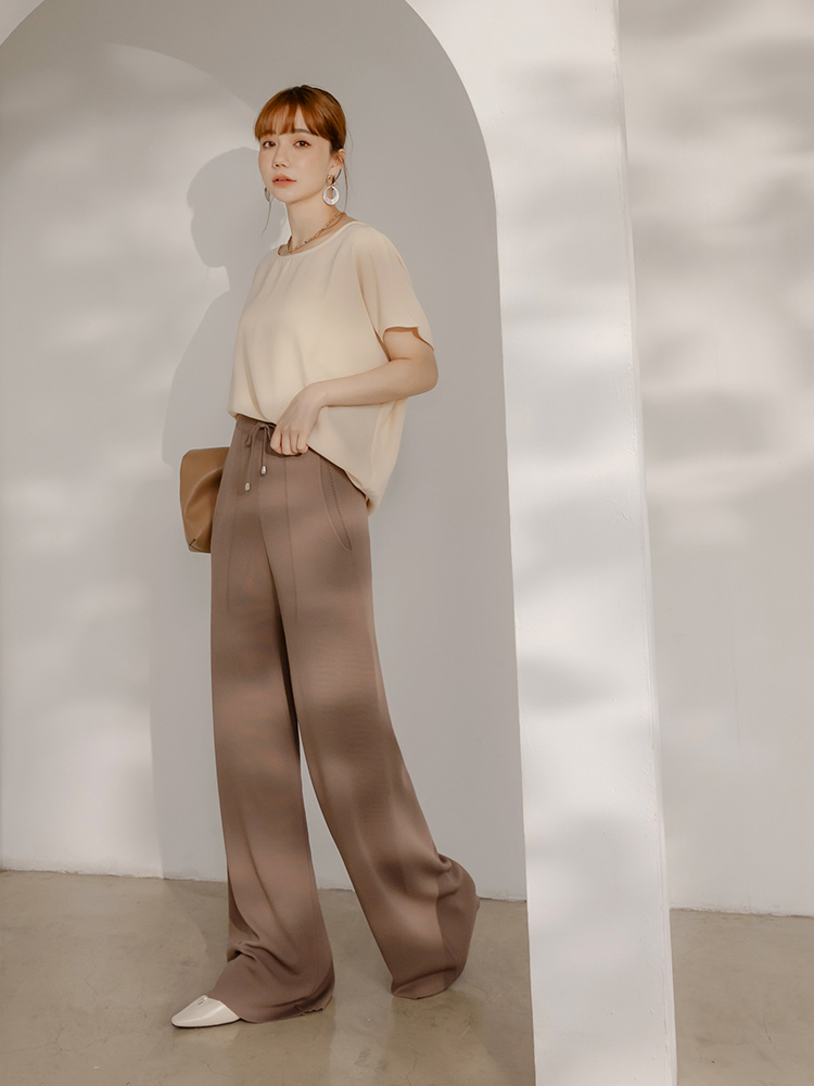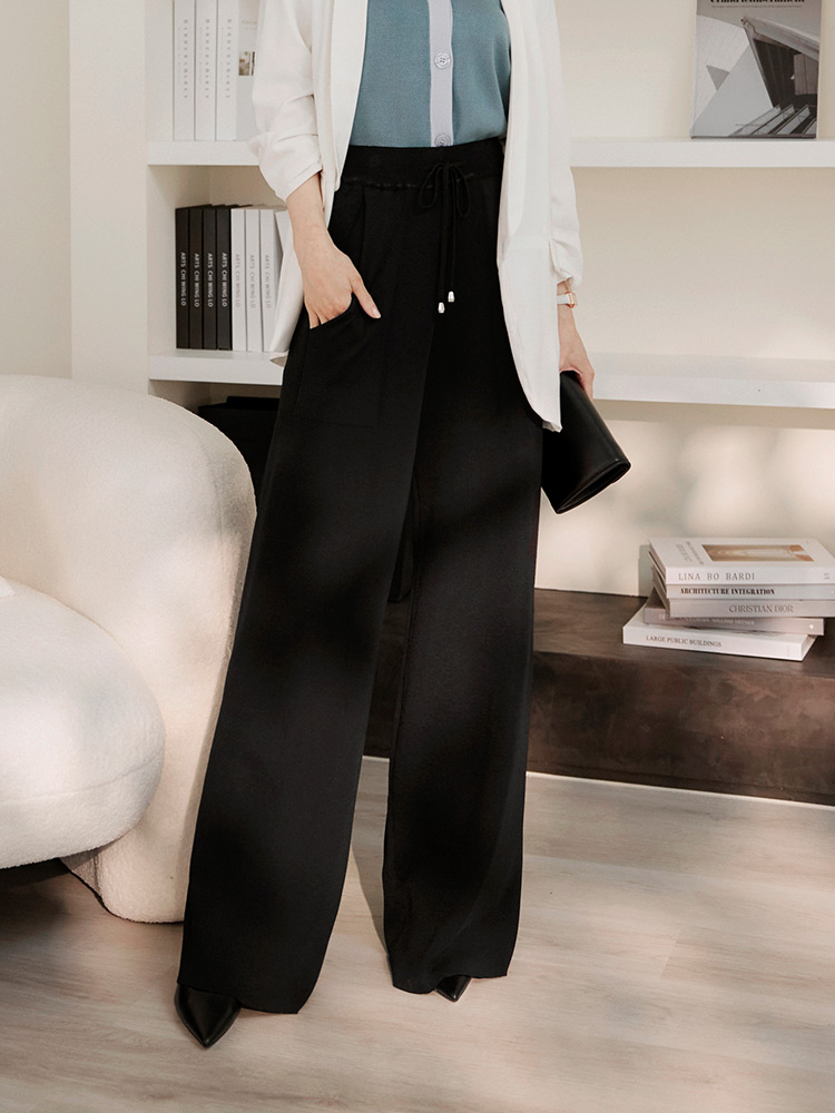 Product Feature: โ Crafted from a breathable, cool-feel knit fabric. โ Features an elasticated waistband. โ Designed with a relaxed, wide-leg cut.
