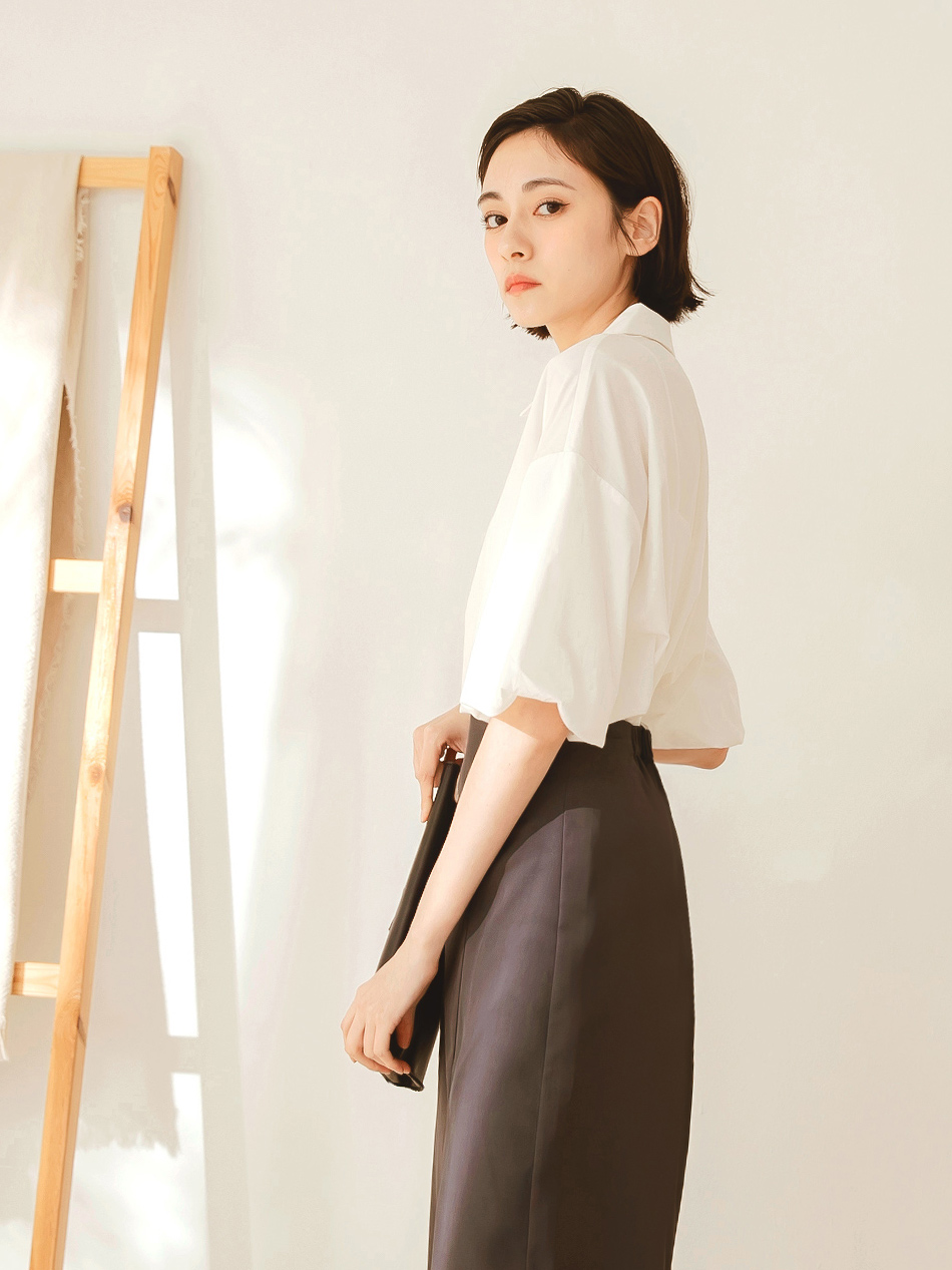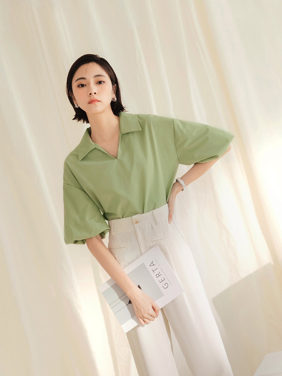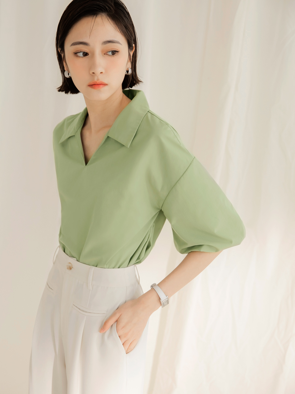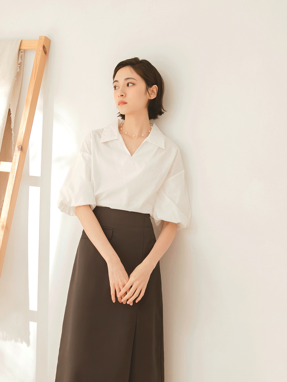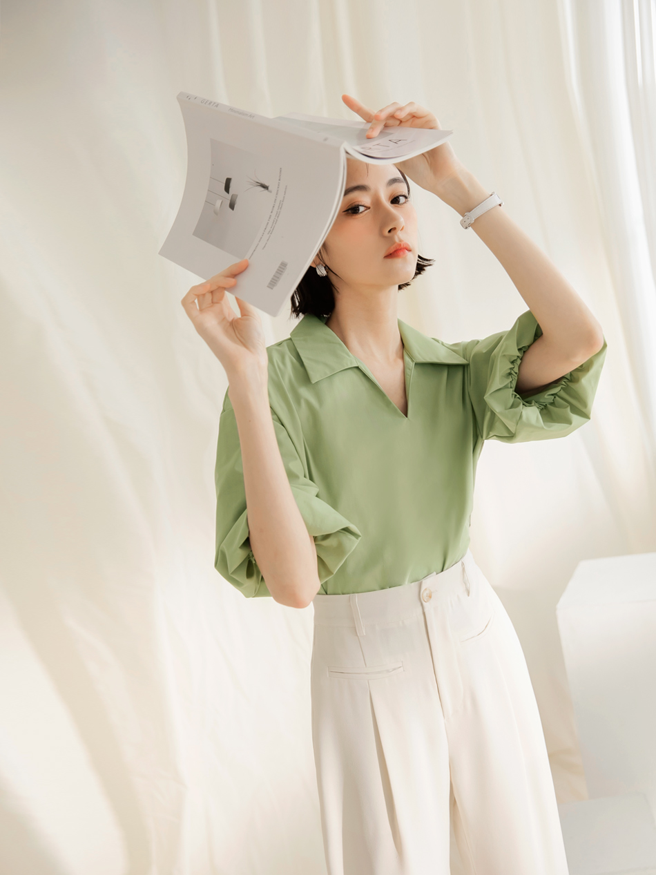 Cotton Blend Puff Sleeve Blouse