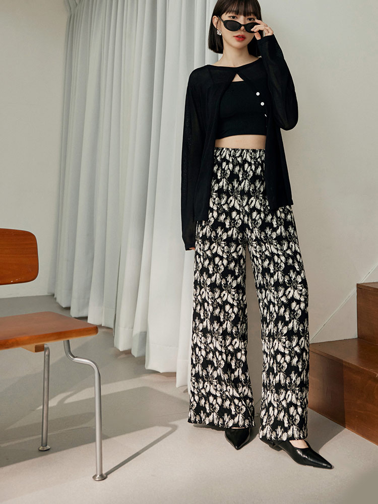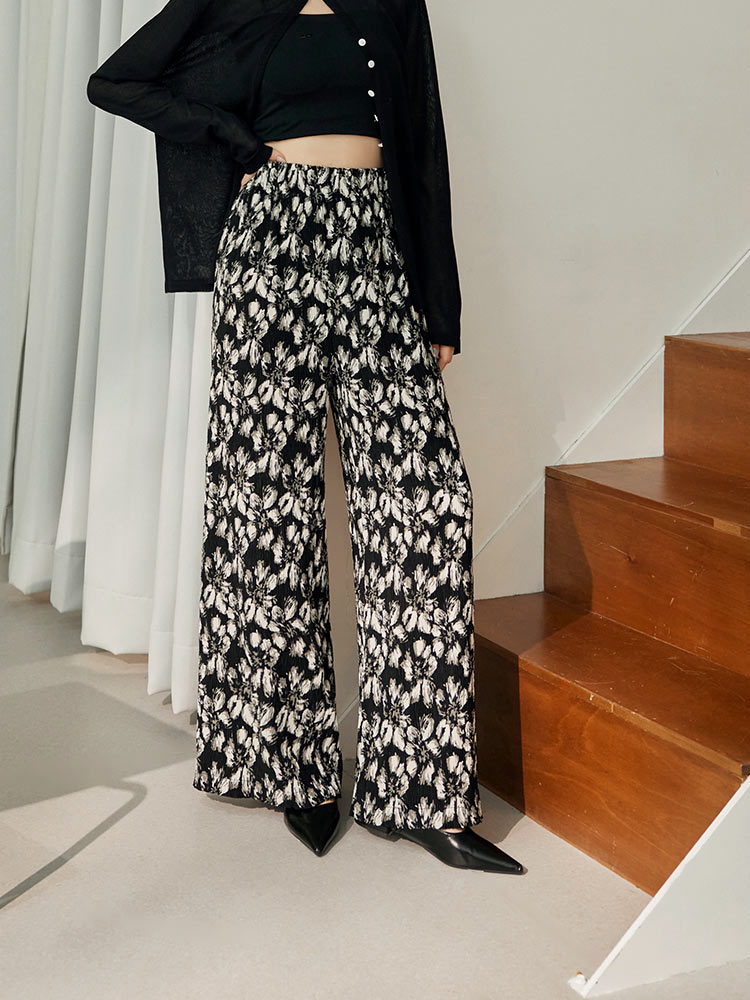 Floral Print Wide-Leg Trousers