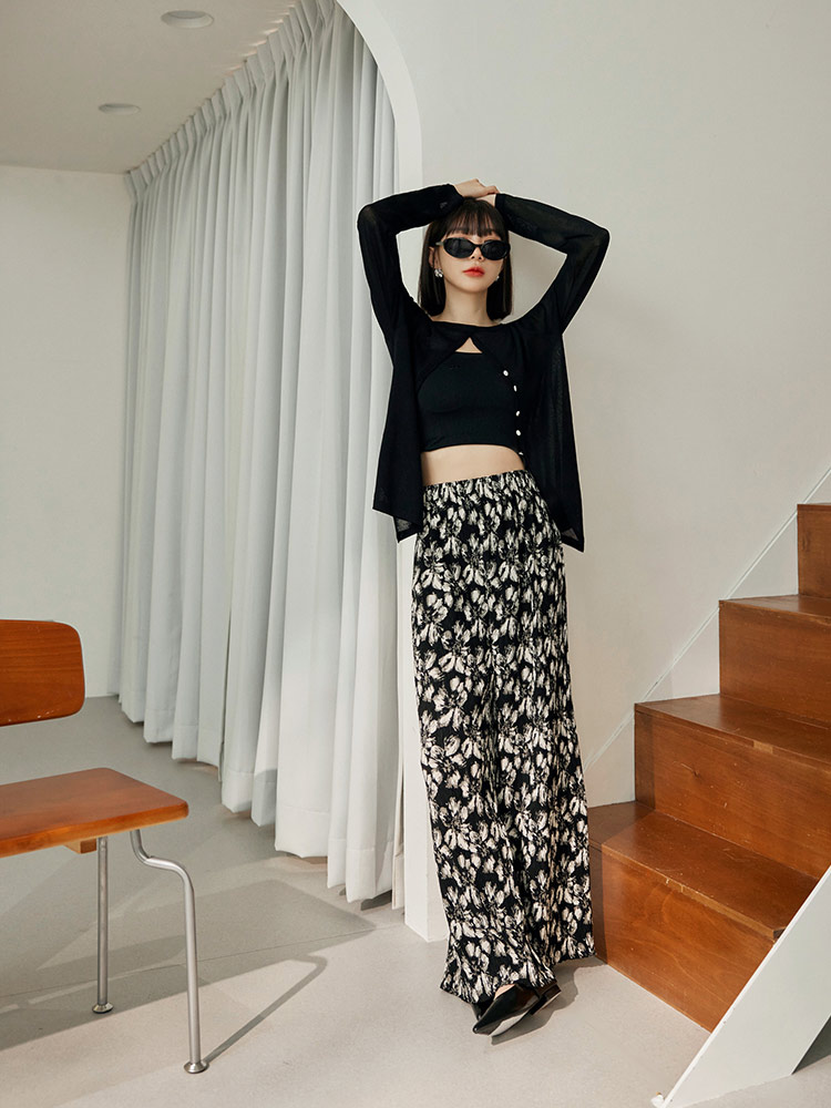 โ Showcases an all-over floral print.