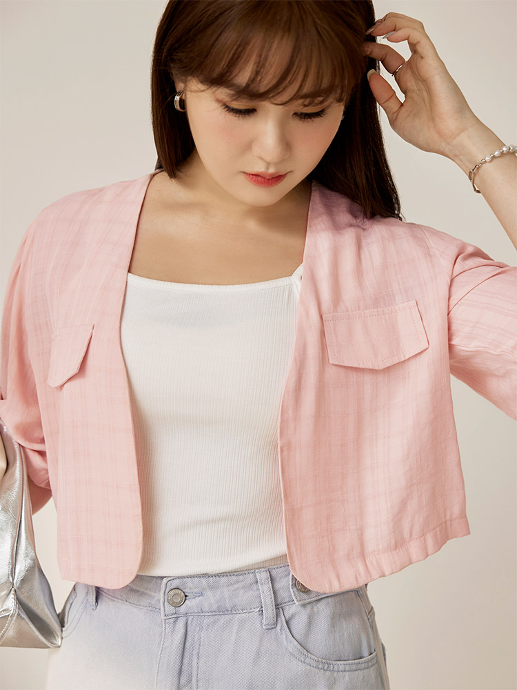 Cloud Checkered Cropped Cardigan