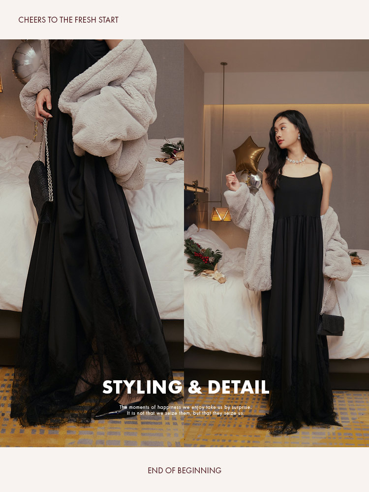 Product Feature: โ Adjustable shoulder straps for a perfect fit โ Features practical side pockets โ High-waisted cut to flatter your figure โ Soft, skin-friendly lace hem