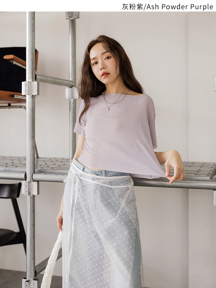 Textured Boat Neck Cropped Top