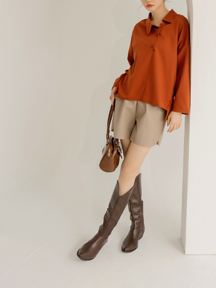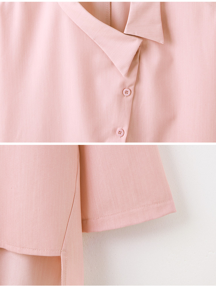 Product Feature: โ Crafted from soft, skin-friendly fabric โ Stylish asymmetrical neckline โ Features a half-open button front โ Designed with a flattering front-short, back-long silhouette