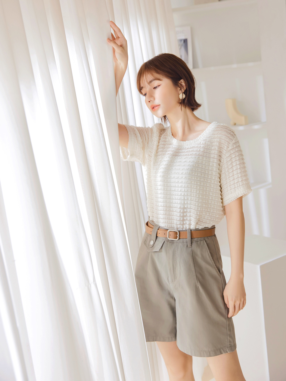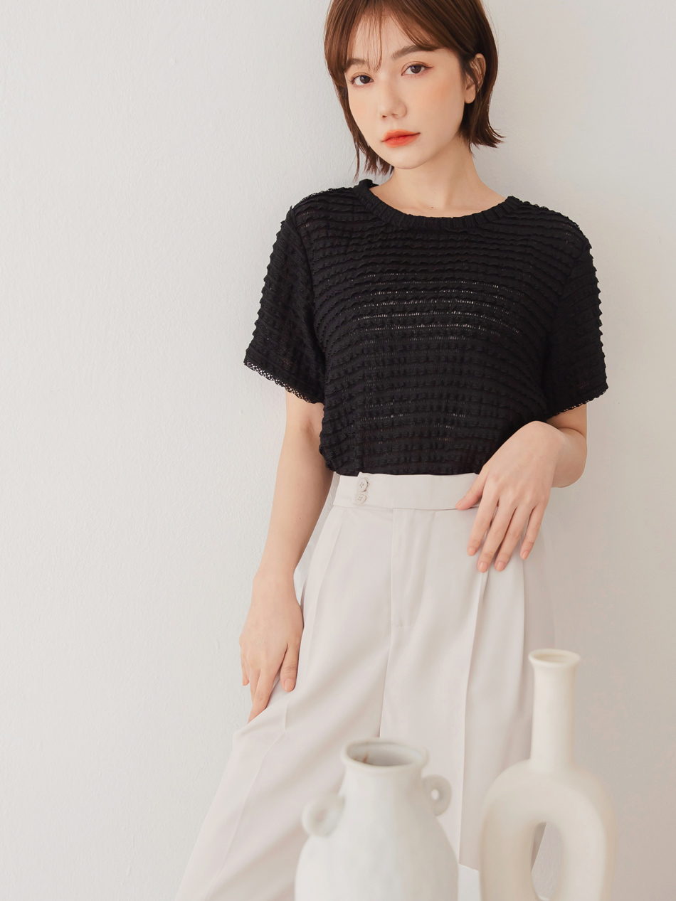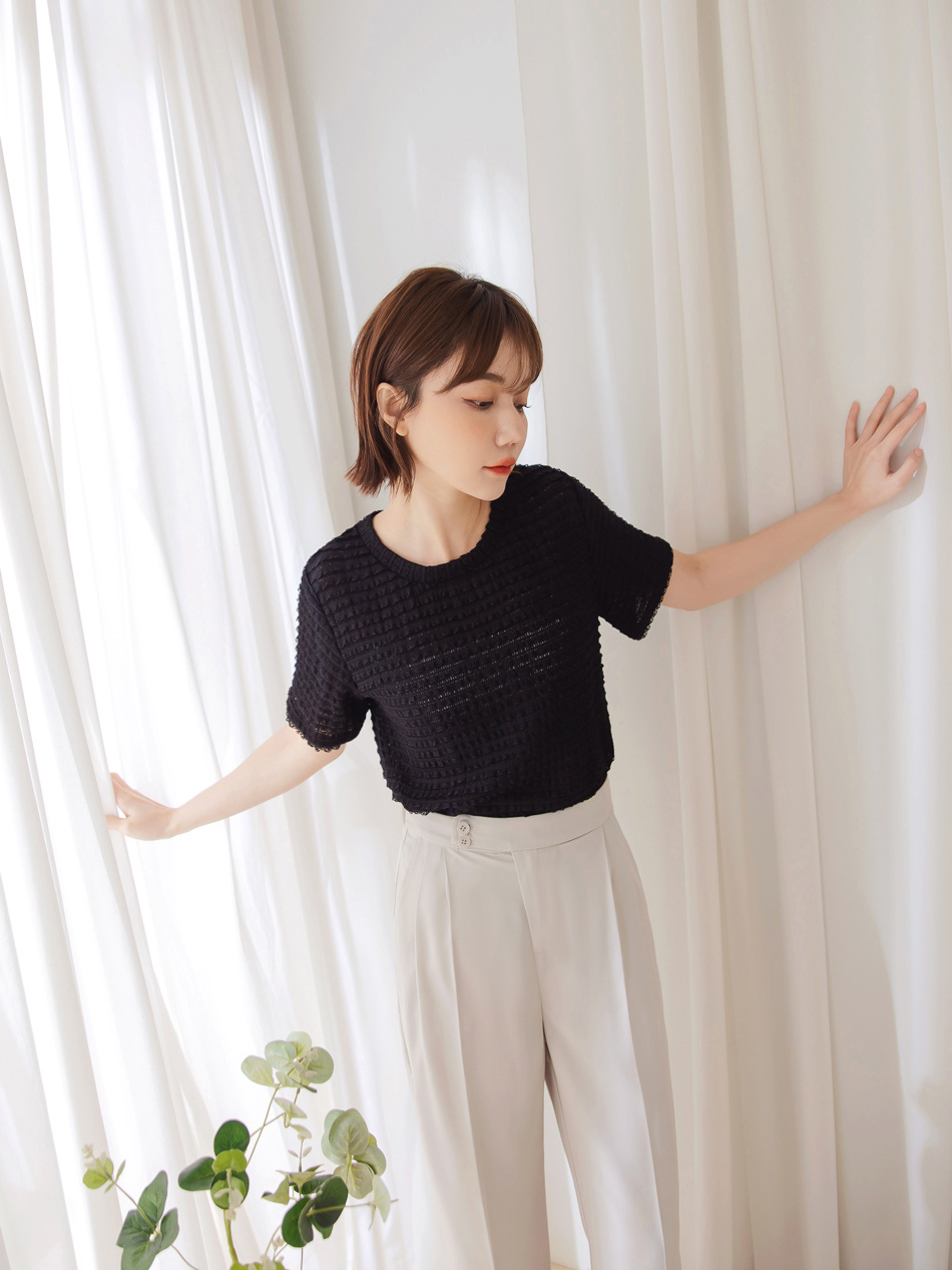 Product Feature: โ Textured fabric adds subtle visual interest. โ Slightly sheer, ideal for layering with a vest. โ Easy to pair for casual wear or dates.