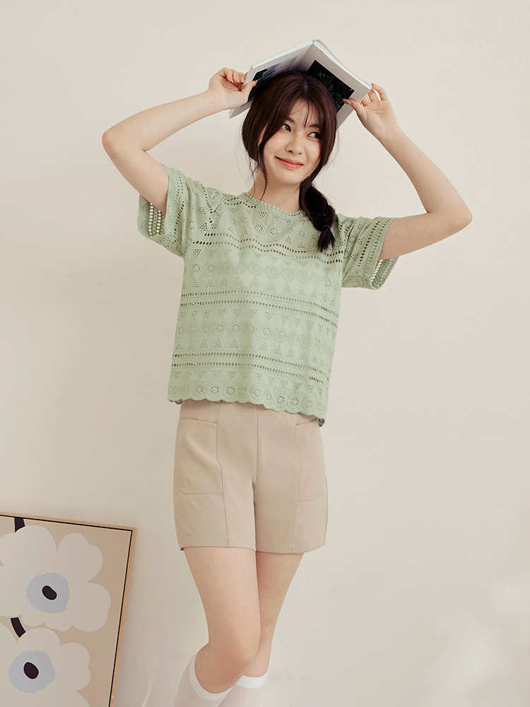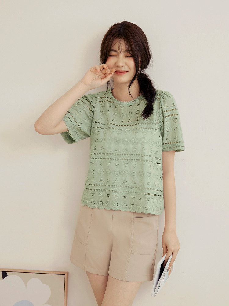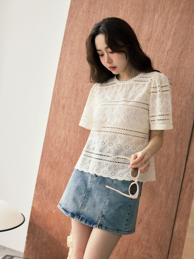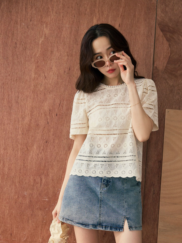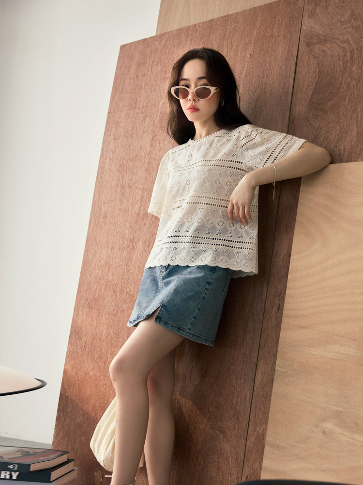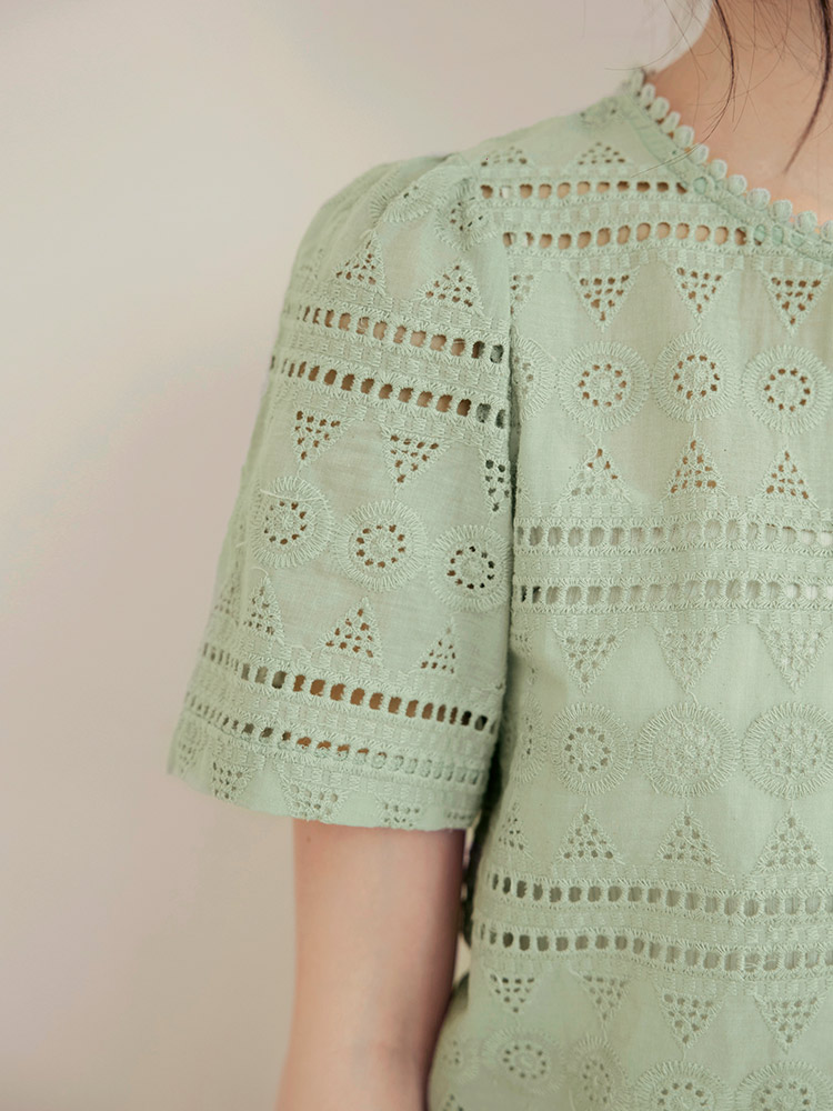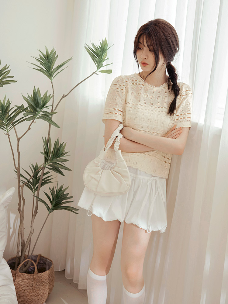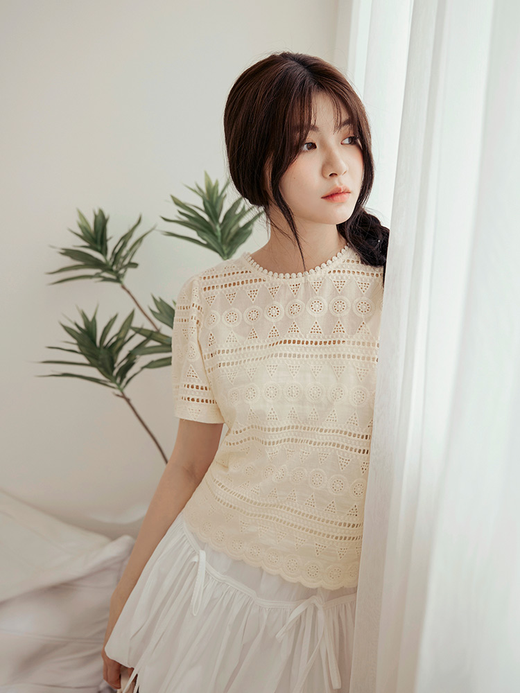 Product Feature: โ Crafted from breathable, pure cotton. โ Delicate lace embroidery adds a touch of elegance. โ Features a flattering cropped silhouette. โ Designed with an open back with button closure.