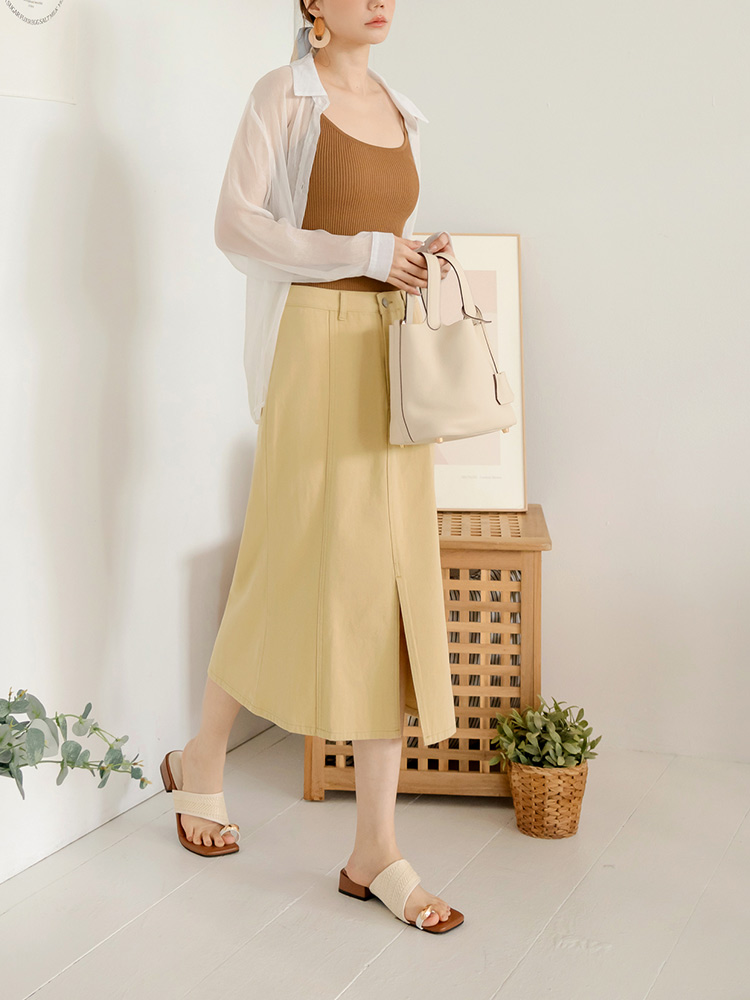 Cotton Split-Front Fishtail Skirt
