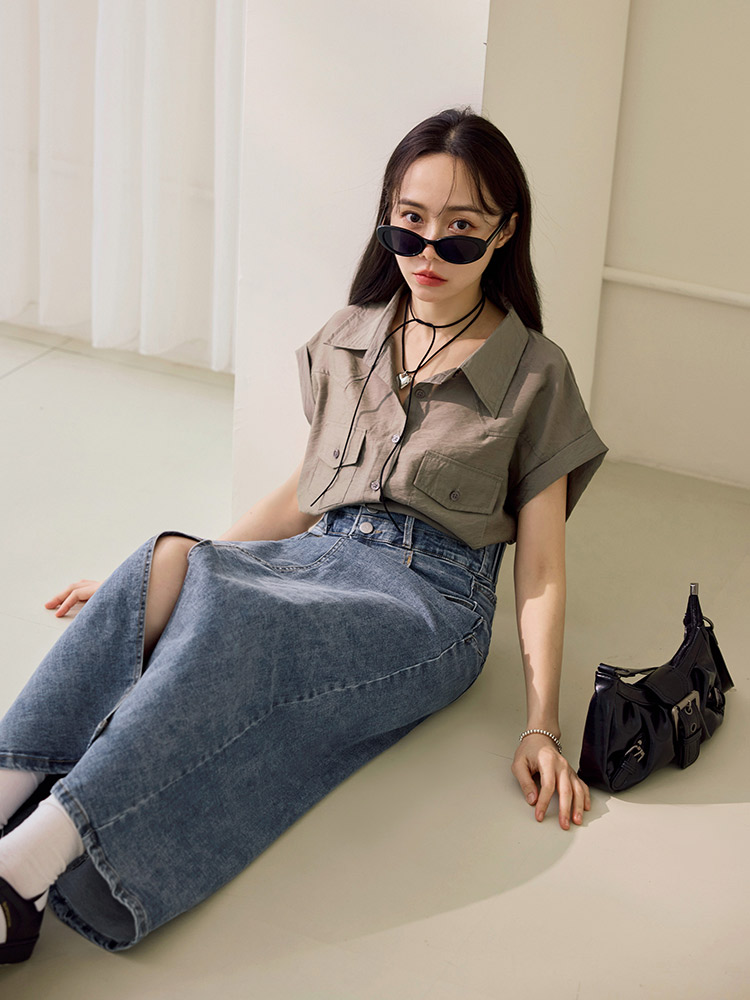 Product Feature: โ Made from a blend of cotton, polyester and spandex for a comfortable fit. โ Features a flattering high-waisted design to accentuate the waist. โ Designed with a sexy split-hem cut. โ Equipped with functional pockets and button closure.