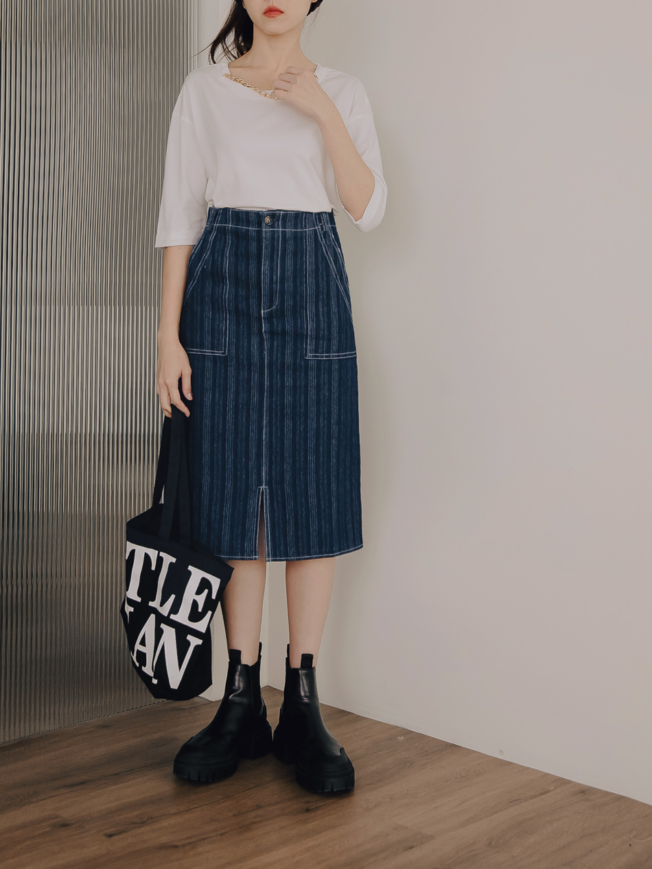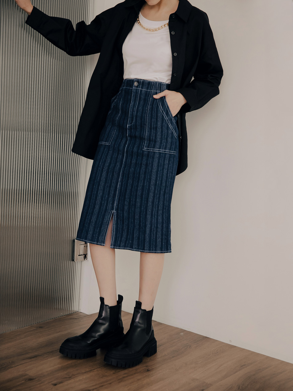 Cotton-Rich Striped Midi Skirt