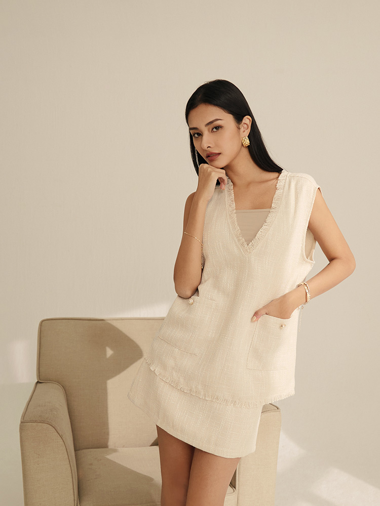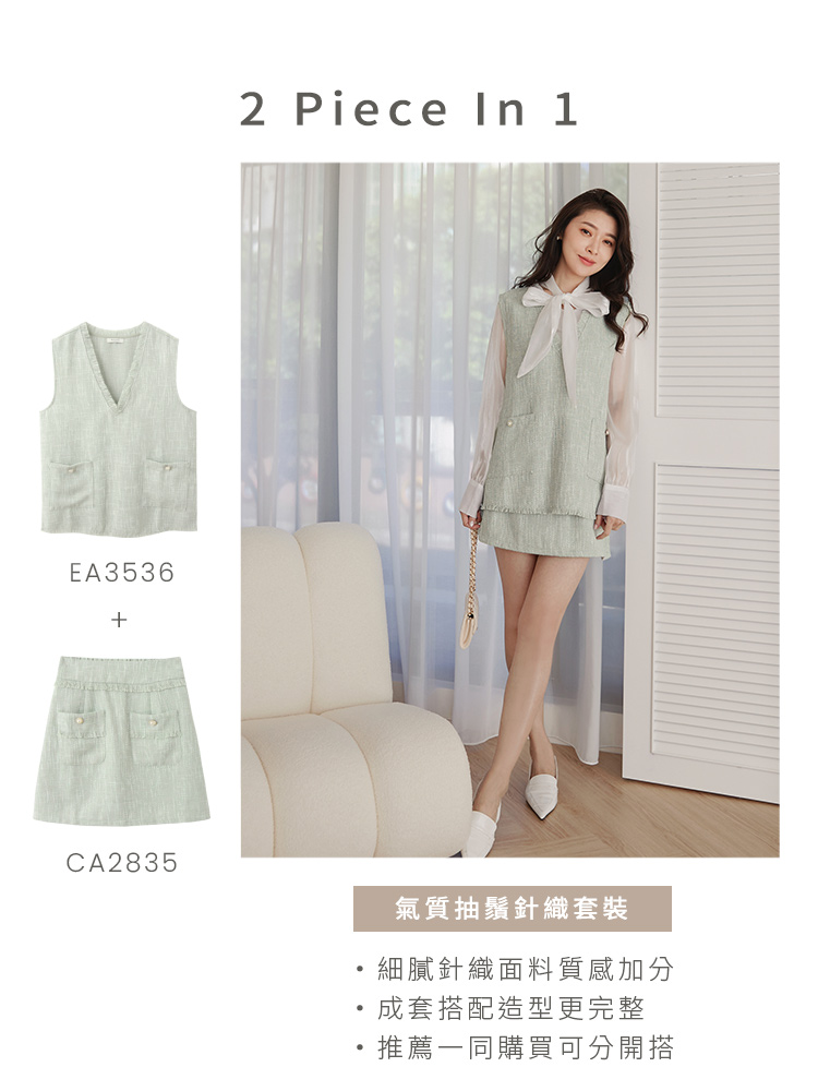 Product Feature: โ Features a refined knit texture. โ Designed with frayed hem detailing for added style. โ Includes functional pockets. โ Pairs perfectly with EA3536 as a matching set.