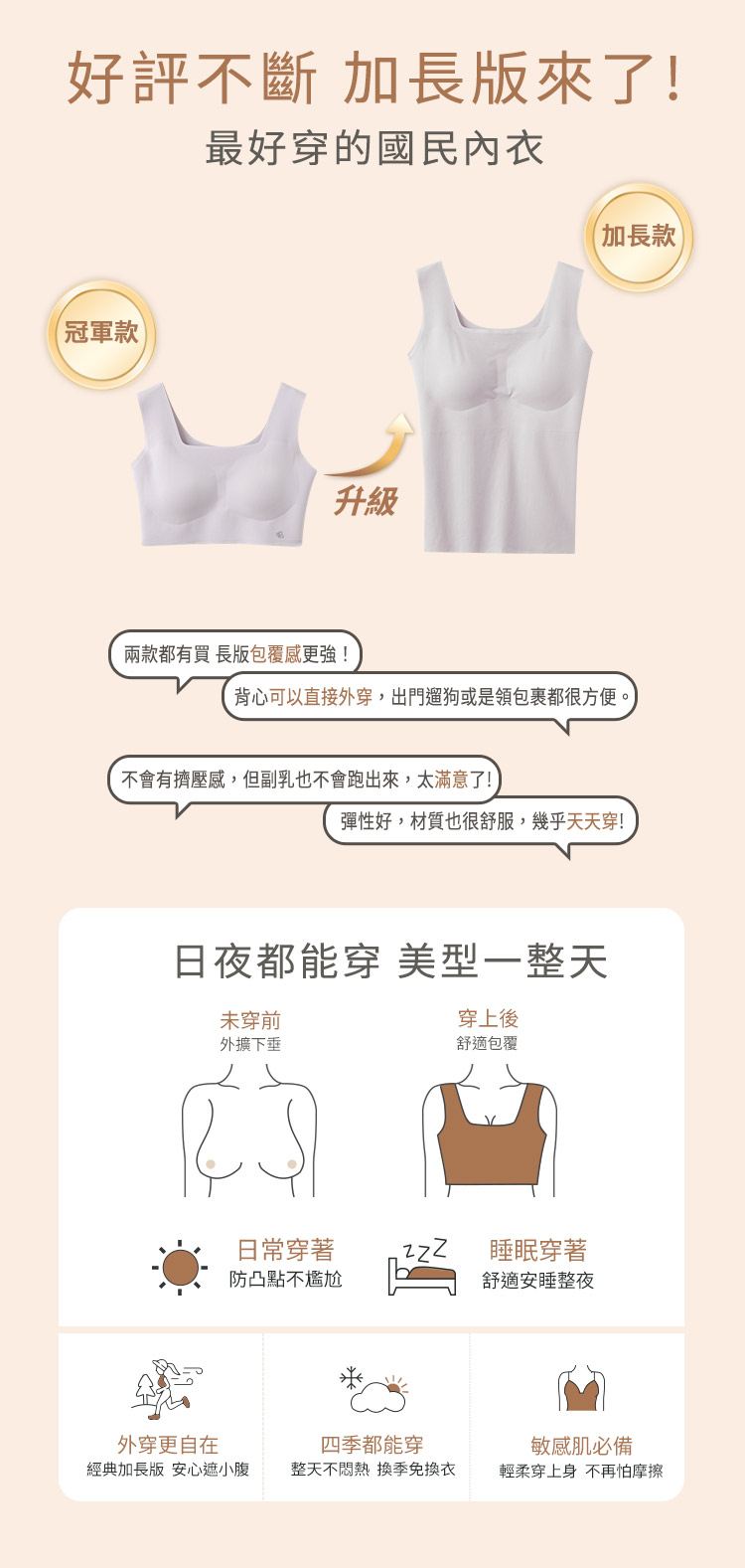 Product Feature: โ Wire-free design for ultimate comfort โ Made with Lycra fabric that retains shape over time โ Features German Rudolf silver ion antibacterial yarn to inhibit odours โ Vest-style wide shoulder straps for enhanced comfort โ Extended length for confident wear