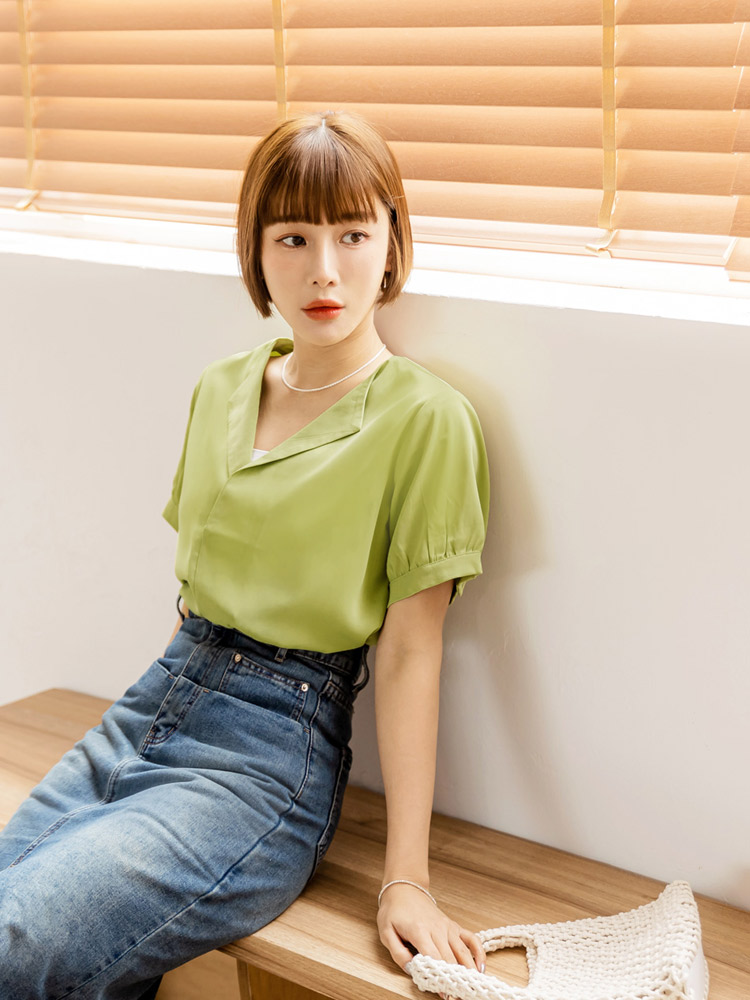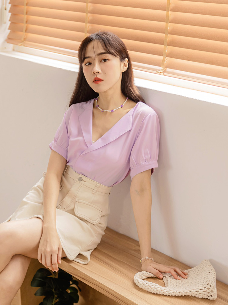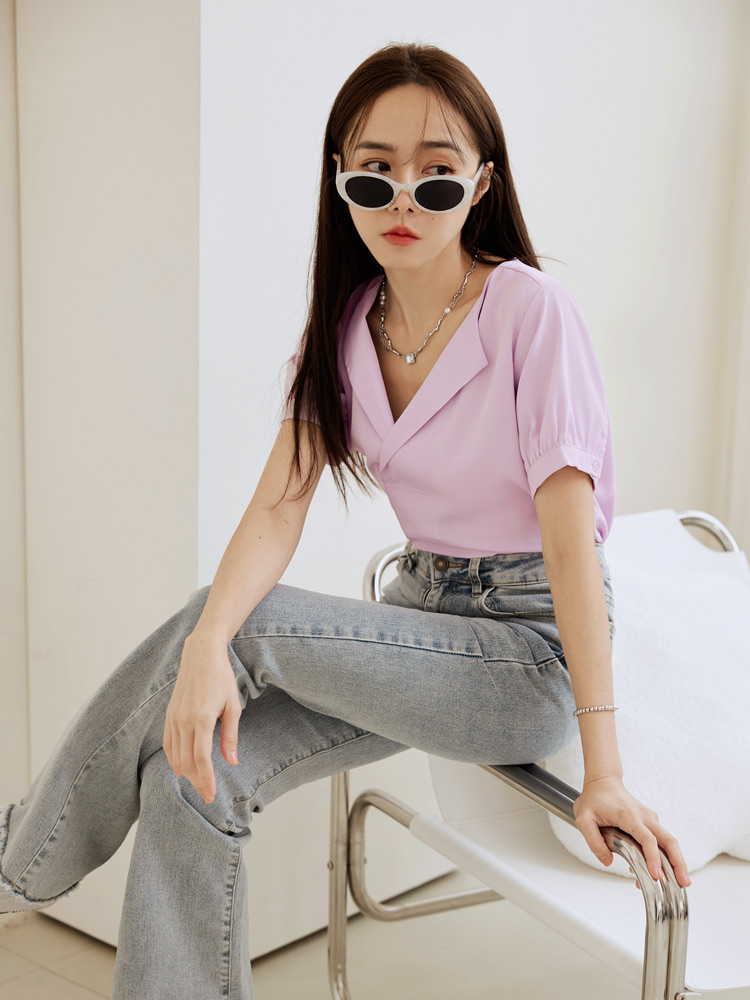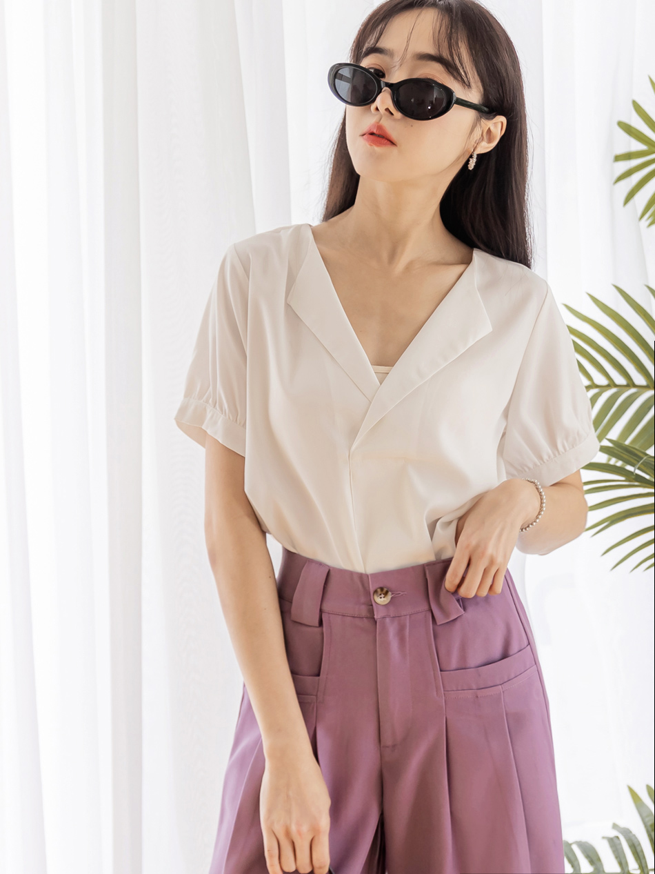 Cooling V-Neck Puff Sleeve Blouse