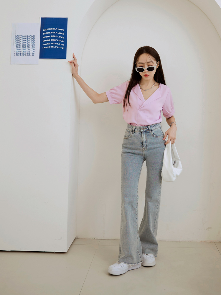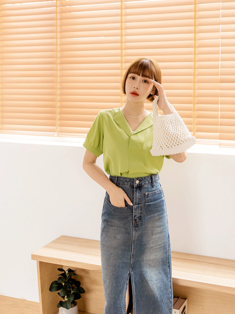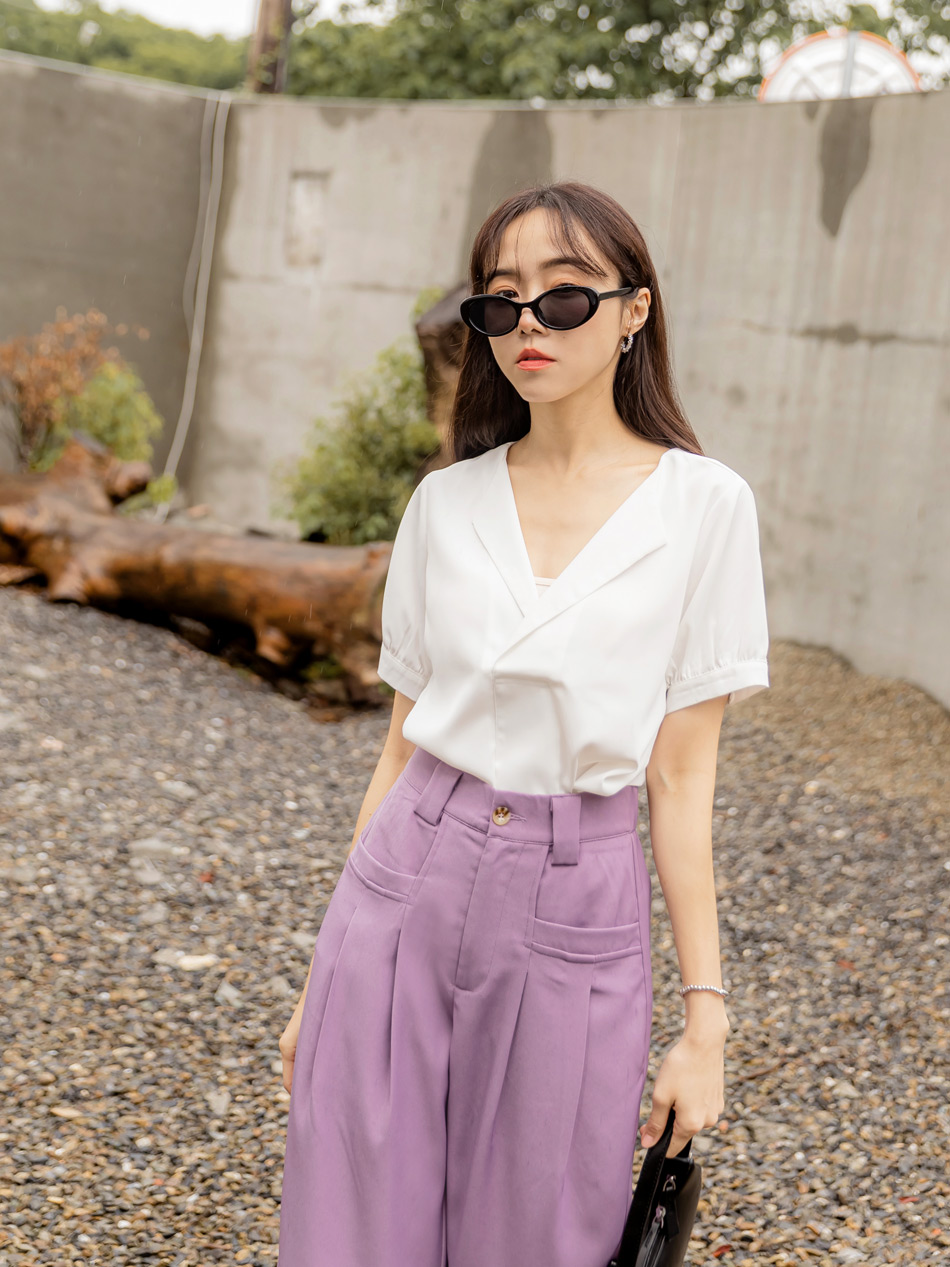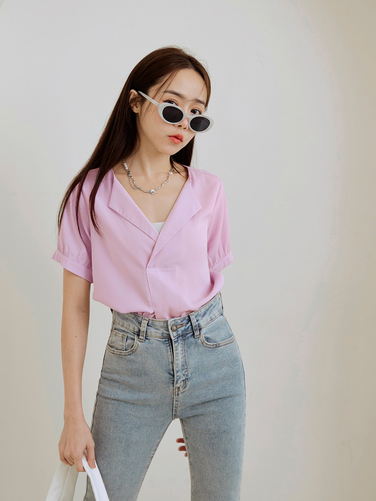 Cooling V-Neck Puff Sleeve Blouse