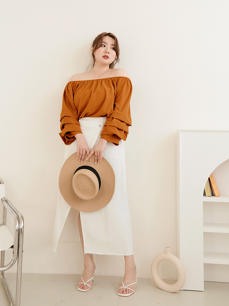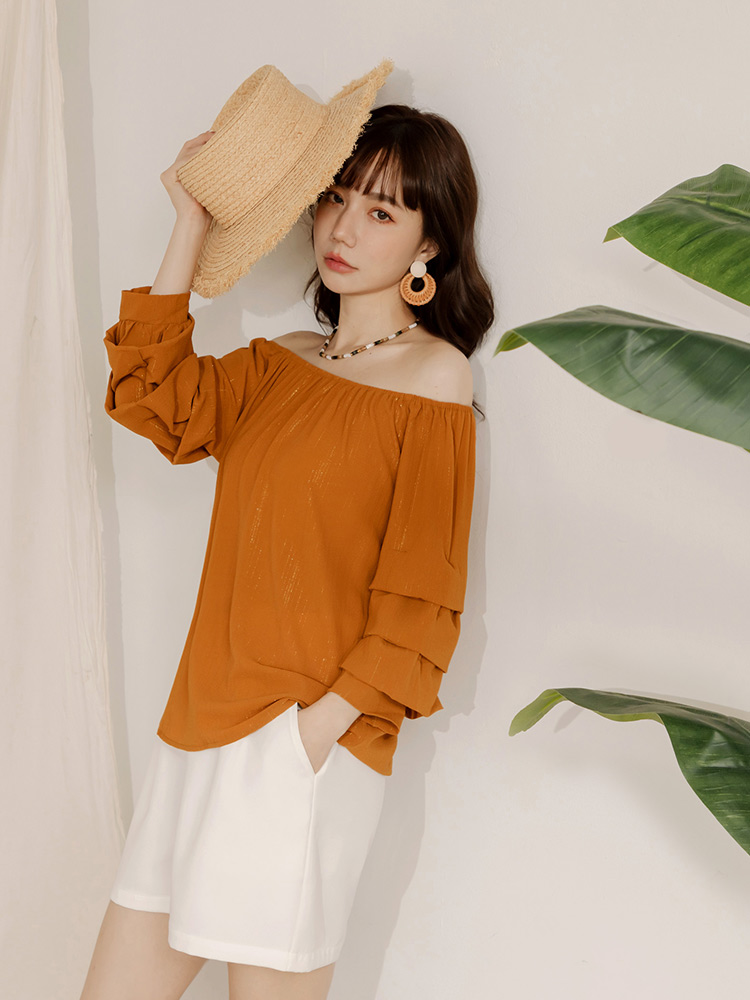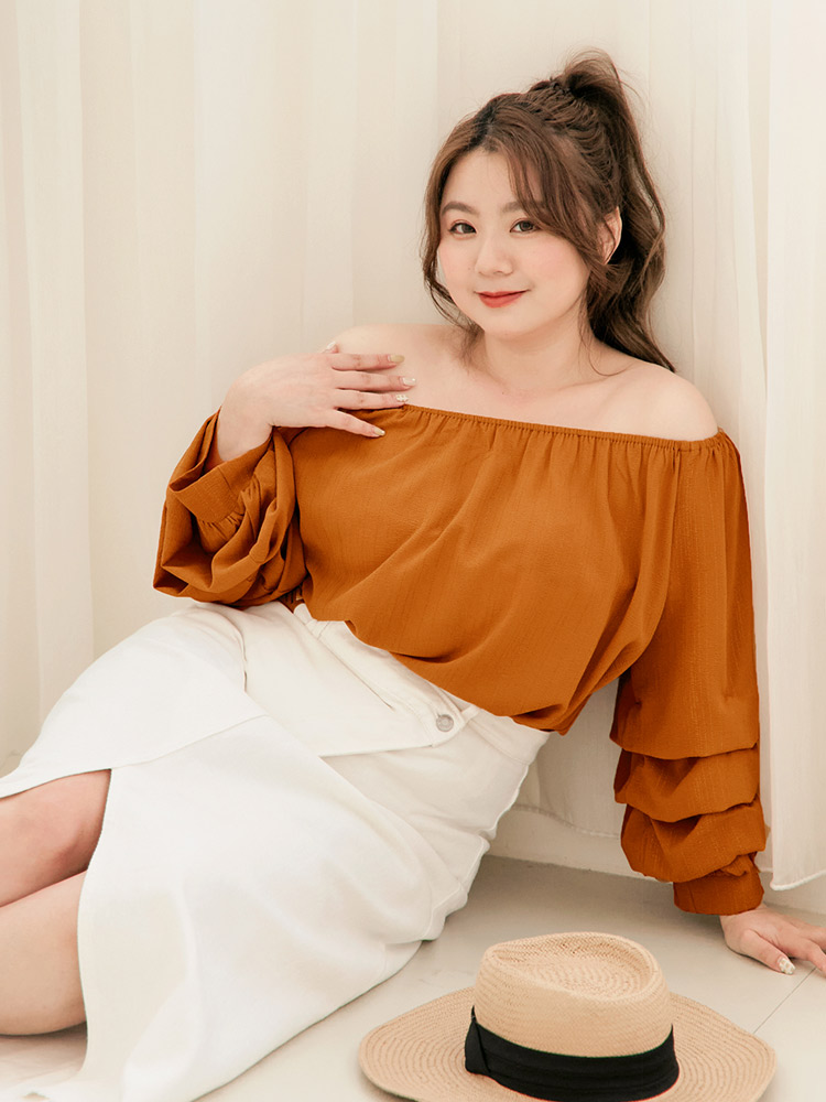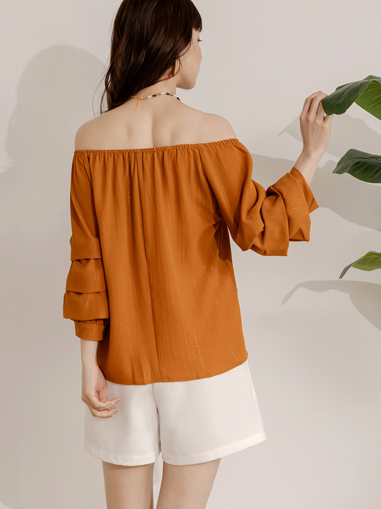Product Feature: โ Features an elastic neckline, allowing for both round neck and off-shoulder styling. โ Crafted from subtly lustrous fabric for a touch of luxury. โ Unique sleeve design for added style.