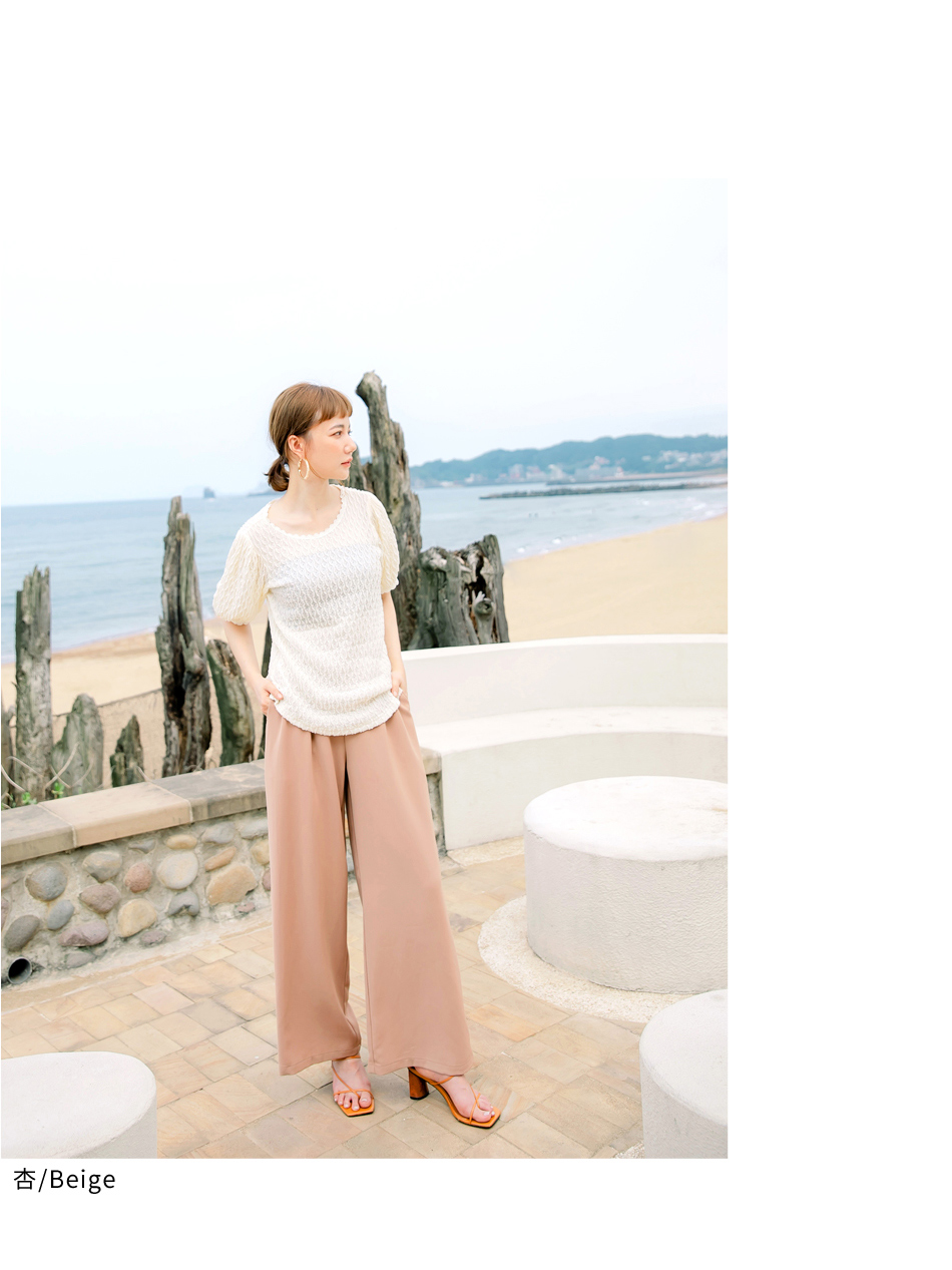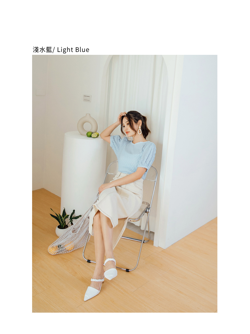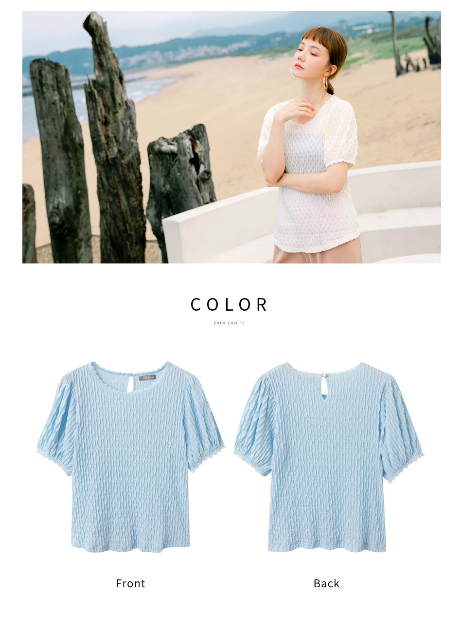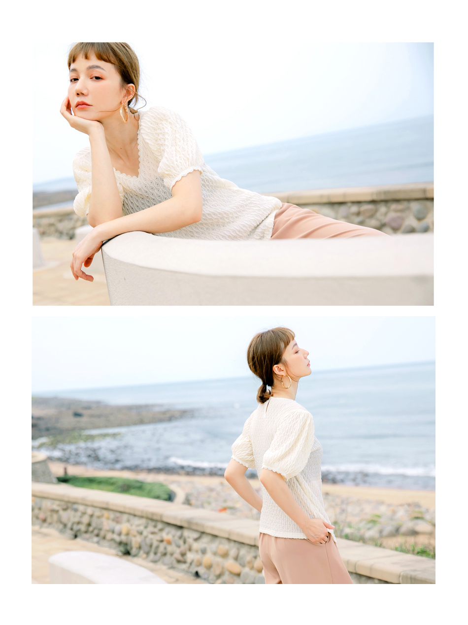 โ—† Features a textured weave and romantic puff sleeves
