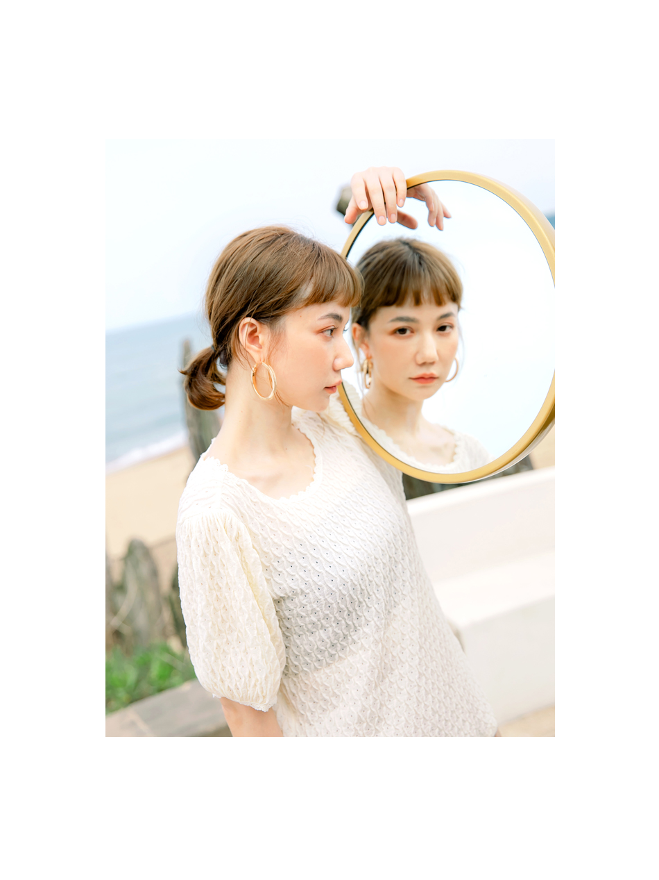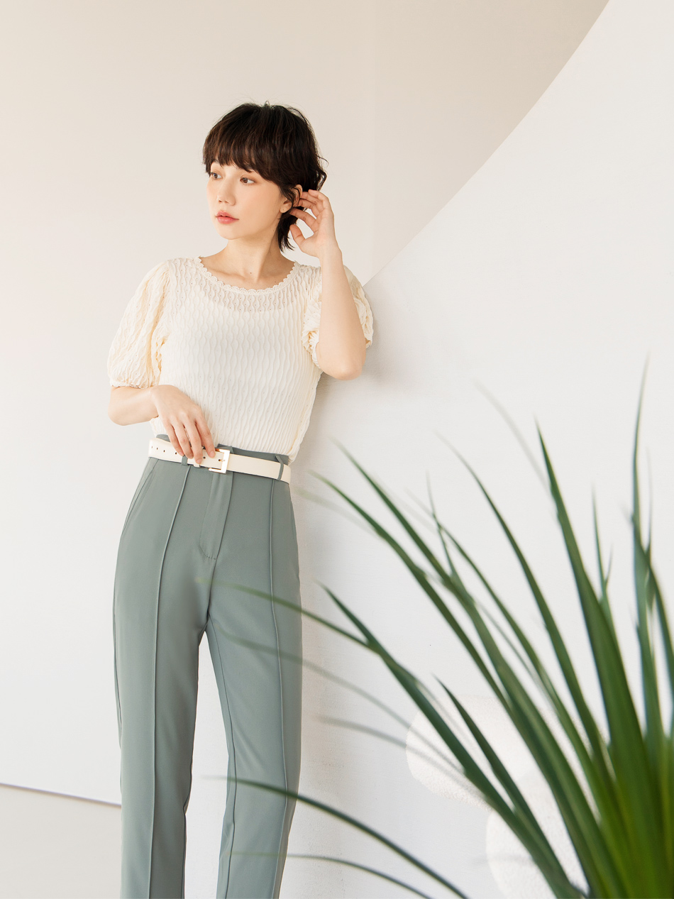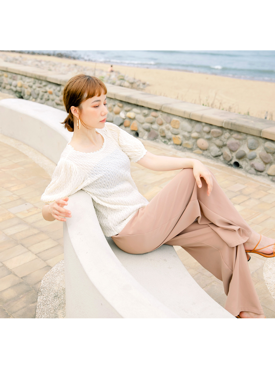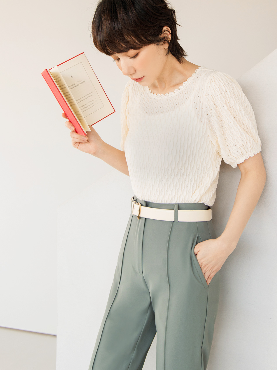 โ—† Features a textured weave and romantic puff sleeves