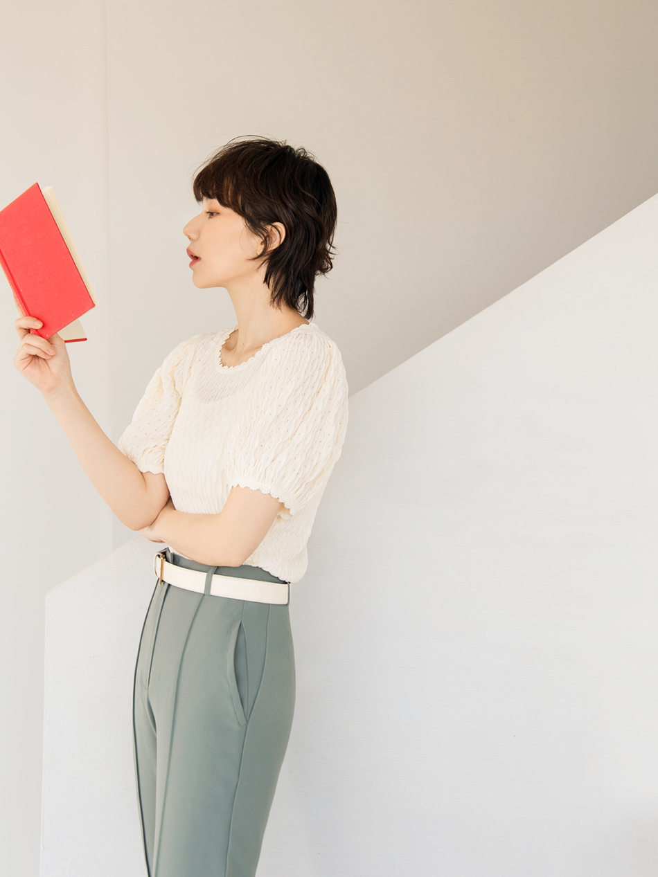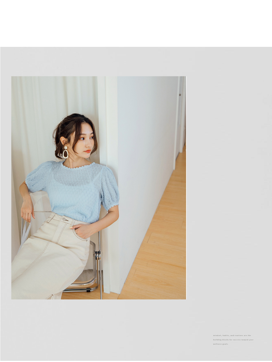 Textured Puff Sleeve Semi-Sheer Blouse