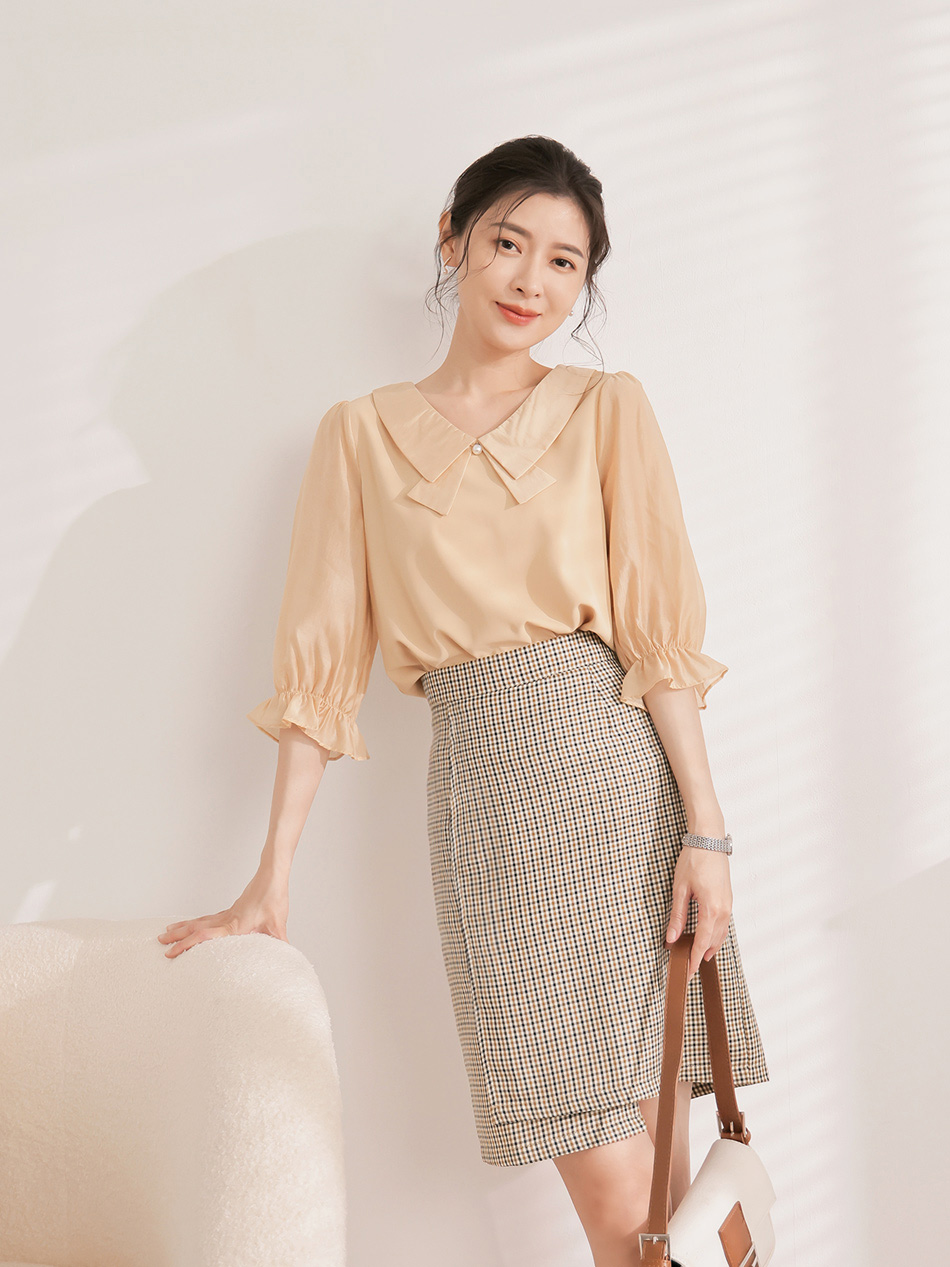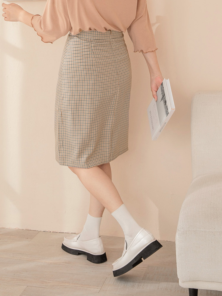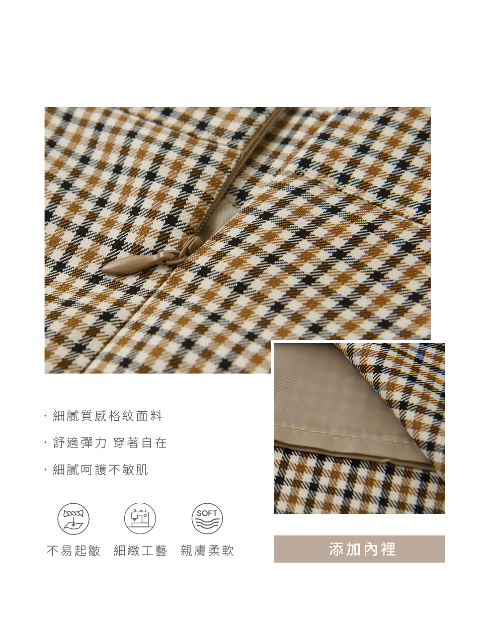 Product Feature: โ Features a stylish check pattern, a timeless design. โ Asymmetric hemline adds a unique touch. โ Includes an inner lining for comfort and coverage.