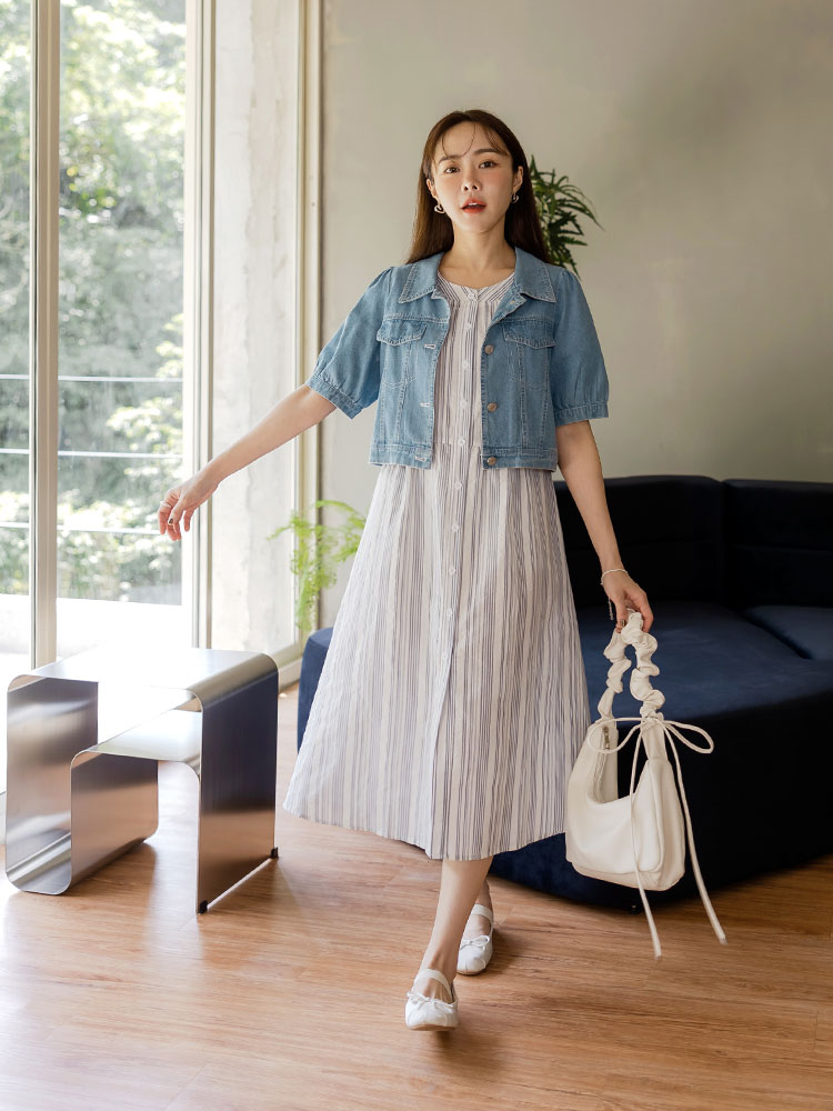 Product Feature: โ Crafted from high-cotton denim for a stylish, durable wear. โ Features a flattering cropped design. โ Versatile for layering or wearing alone.