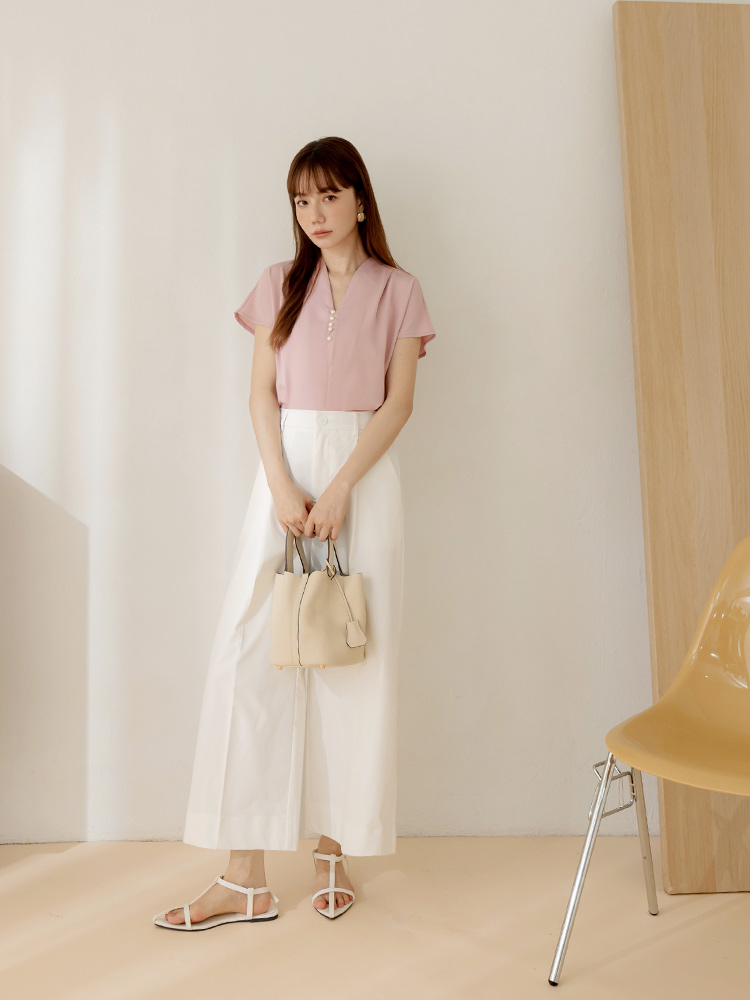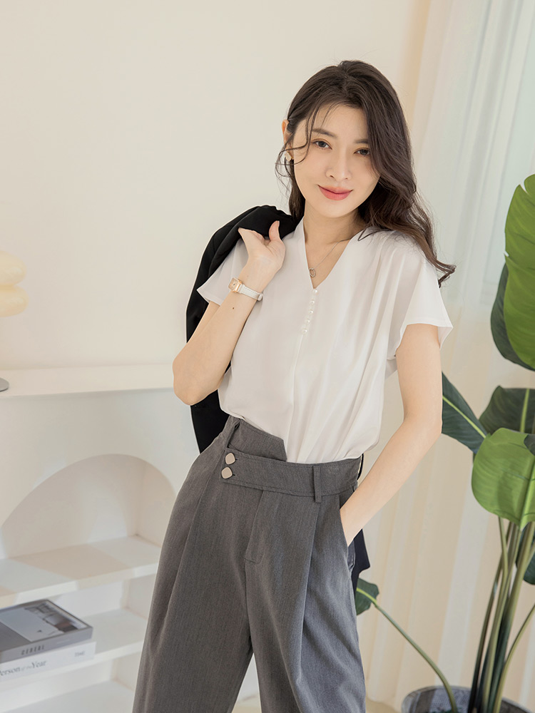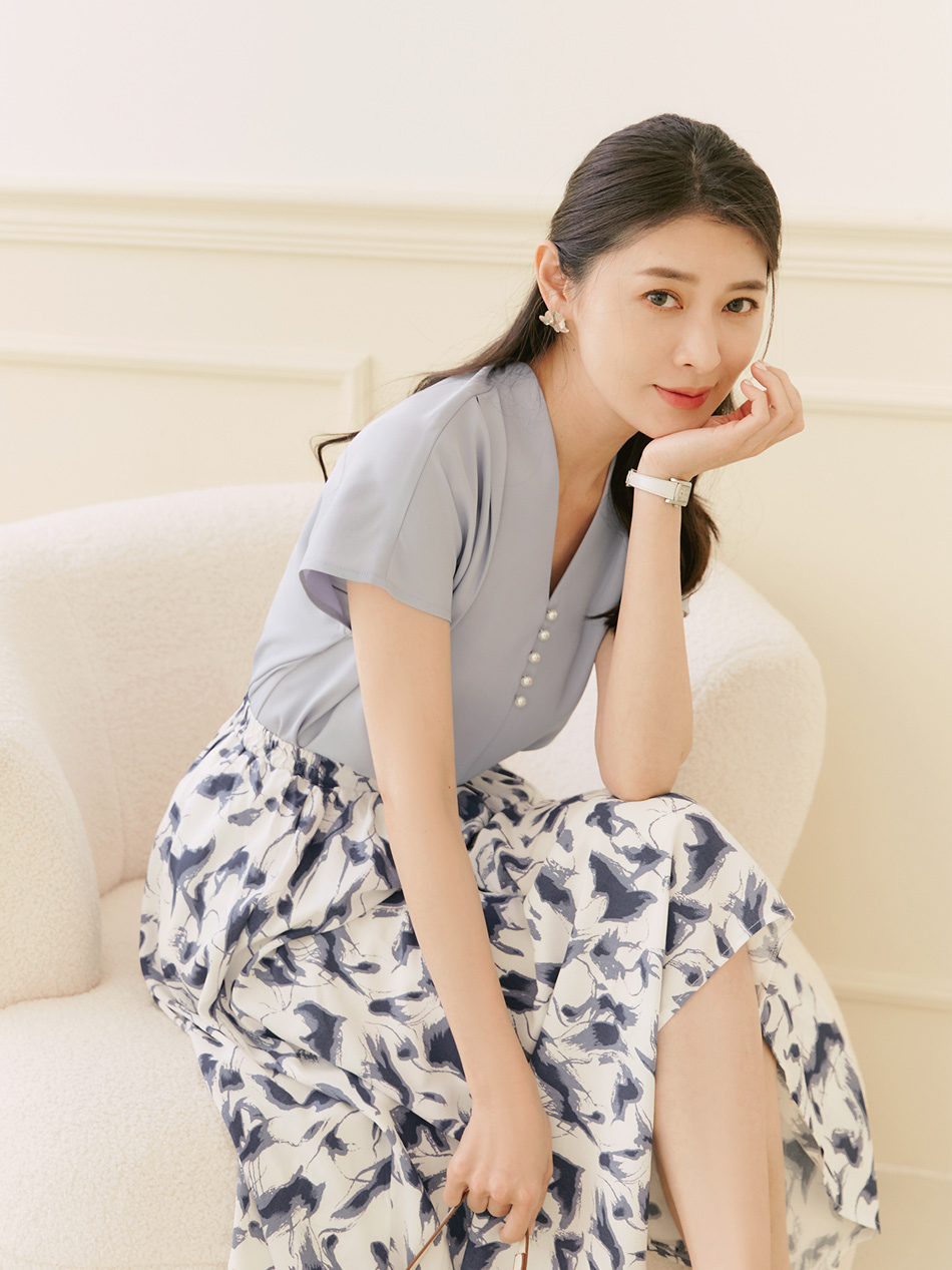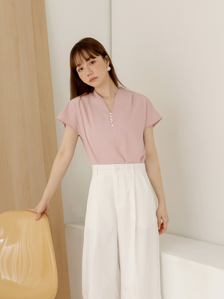 Product Feature: โ Crafted from smooth, skin-friendly fabric for ultimate comfort. โ Flattering V-neck design to elongate the neckline. โ Delicate pearl embellishments add a touch of elegance.