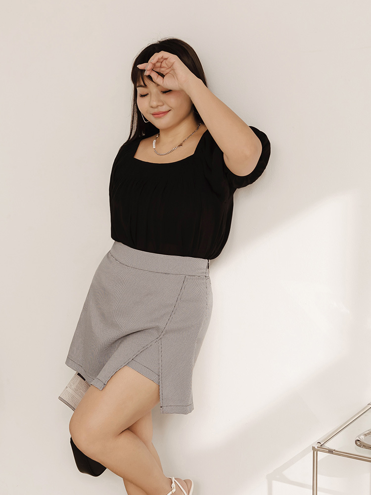 Product Feature: โ Designed as a skort with built-in shorts and an elasticated back waist โ Flattering A-line cut to visually slim the hips โ Features a slit design to elongate the legs