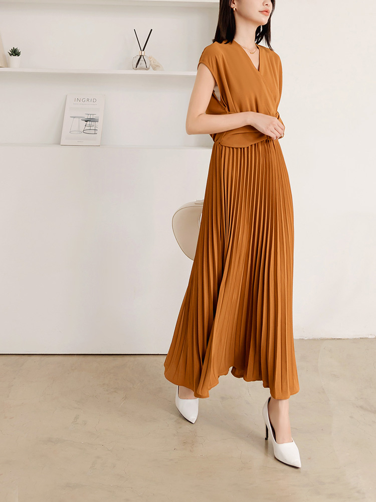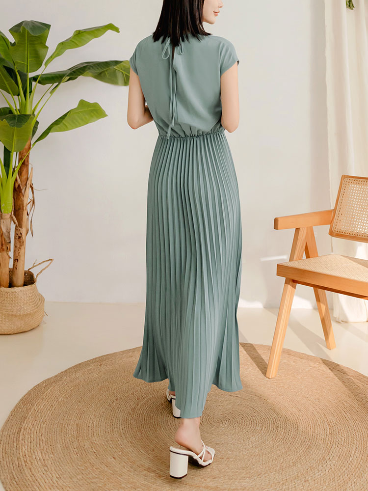 Pleated Maxi Dress with Tie-Back Detail